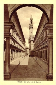 11. kép: XX. század eleji képeslap a firenzei Uffiziről, hátterében a Palazzo Vecchioval