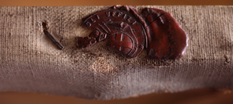 3. kép: A Galleria degli Uffizi viaszpecsétje a vászon szegélyén (Fotó: Erdős Alexandra, Imrik Zsófia)