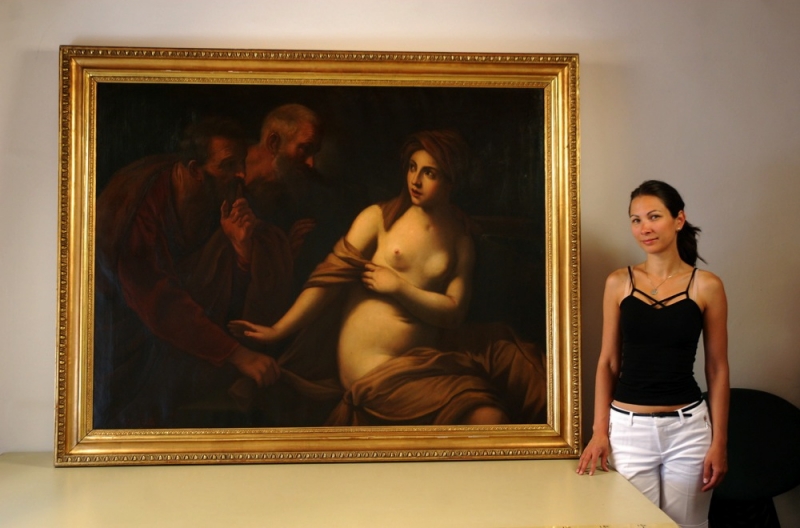 1. kép: J. Cheli Capella: Zsuzsanna és a vének, Guido Reni-másolat, 1893-1919, olaj, vászon, 116x151,5 cm, magántulajdon (Fotó: Imrik György)