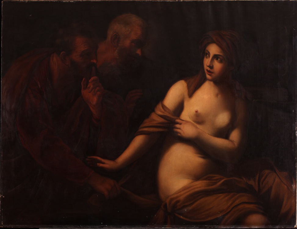 Zsuzsanna és a vének történetének ábrázolása rendkívül népszerű volt a 17-18. században. A Szentírás szerint Zsuzsanna, a szépséges istenfélő asszony éppen a kertben fürdőzött, mikor a tisztátalan vágyaktól fűtött vének rátörtek és megzsarolták. Miután Zsuzsanna visszautasította őket, bosszúból rosszhírét keltették. Az assszonyt házasságtörés vádjával meghurcolták, Dániel próféta azonban bölcsességével fényt derített az igazságra, megmenekítve az ártatlan áldozatot a gyalázattól és a megkövezés büntetésétől.