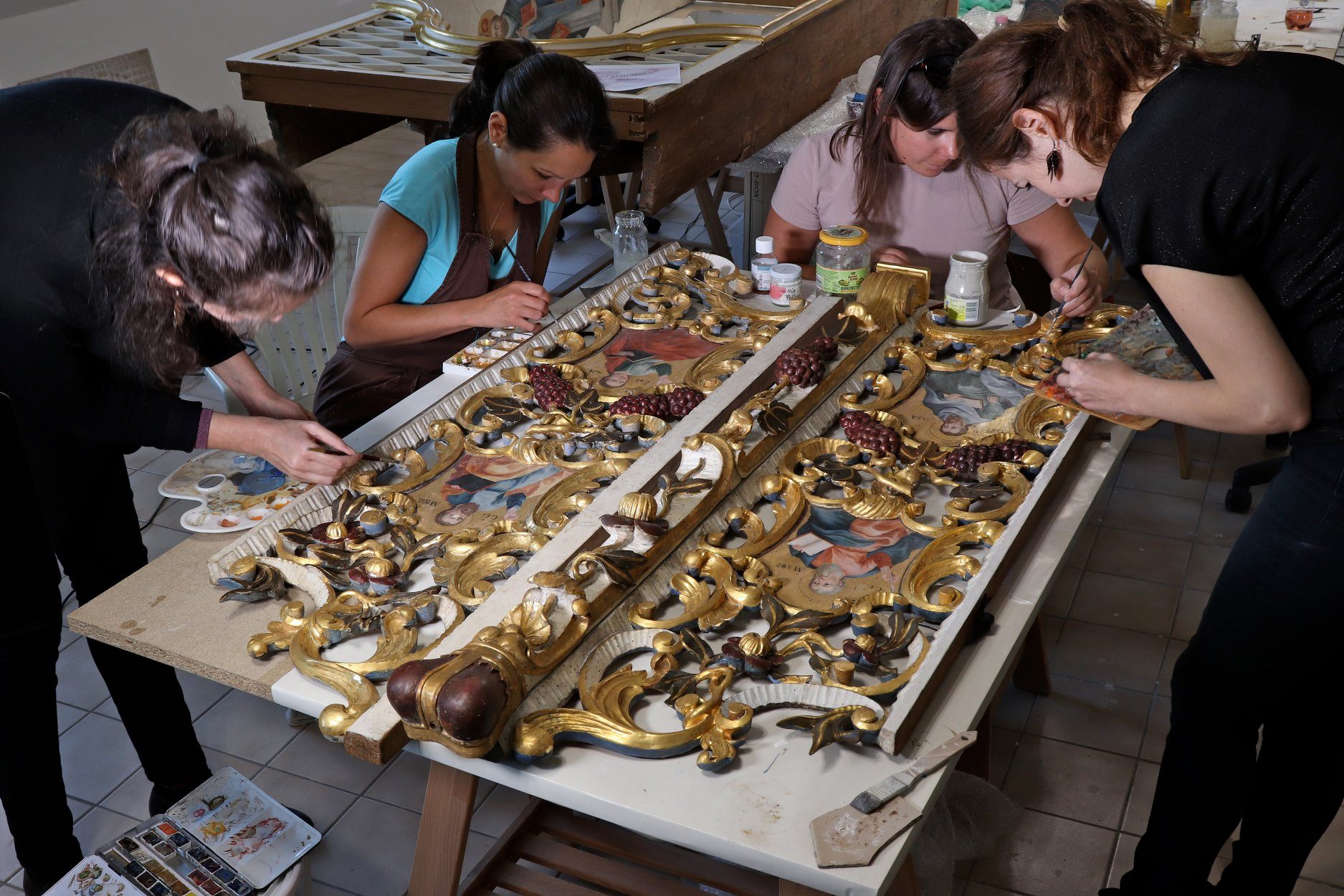 "A restaurálási munkák szakmai vezetője, összefogója Seres Tamás ikonfestő, restaurátor. A fiatal restaurátorcsapat tagjai Bakonyi Tímea, Erdős Alexandra, Imrik Zsófia, Kránitz Edina, és Szokán Erika festőrestaurátorok, valamint Kolozsvári Gergely farestaurátor. A munkába bekapcsolódtak még Fekete Dóra, Márk Zsófia, Somodi Nóra, Szépvölgyi Katalin restaurátorok is."