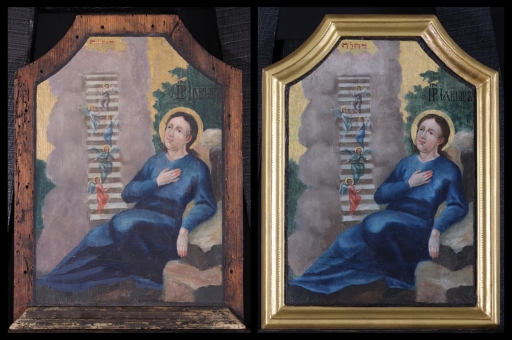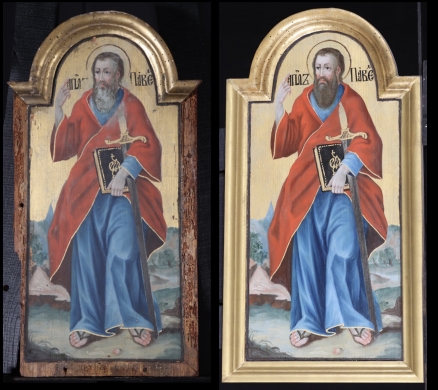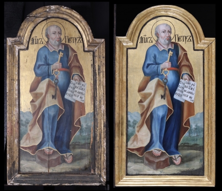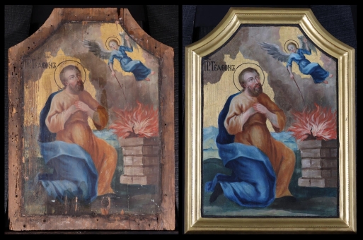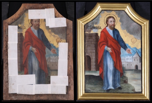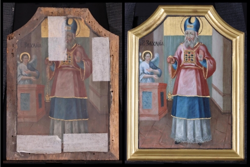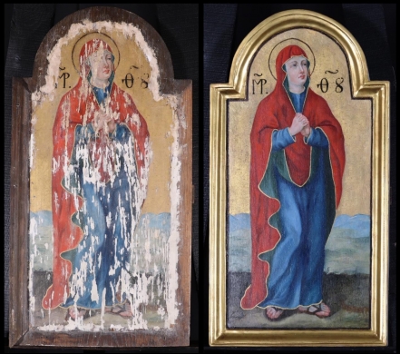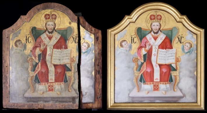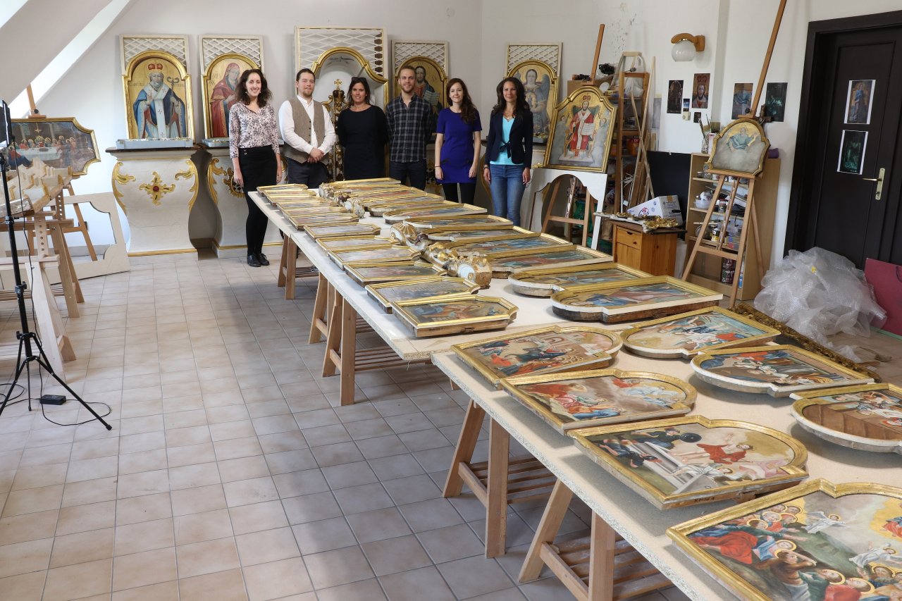Az ikonosztáz királyi ajtajának restaurálása. A restaurált ikonok bemutatása a műhelyben 2019. október 10-én. A restaurálás helyszíne az "Árpádházi Szent Erzsébet Szeretetotthona" volt. (Budapest, Szerb Antal utca 13.)