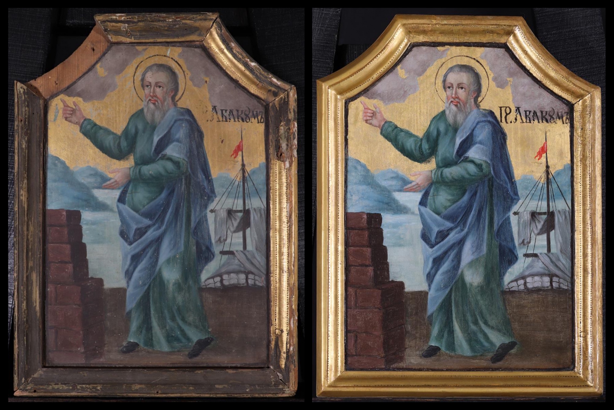 Habakuk próféta, a Júdai Királyságban tevékenykedő jeruzsálemi látnok népe és kora (Kr. e. 7. sz.) bűneivel, nyomorúságaival járult Isten színe elé. Az Úr válasza, a káldeusok közeledő támadásáról kapott látomása azonban megrémítette. Habakuk jobbjával az égre mutat, baljával egy kőfalra, ami arra utal, hogy Isten minden bűnt megítél, semmi sem marad titokban. „Bizony, még a fal köve is kiáltja, s a házak gerendázatának fája ráhagyja! Jaj annak, aki vérontással épít várost, és gonoszsággal emel várost!” (Hab 2,11-12) Mögötte a tenger látható és egy hajó, mivel népét tengeri élőlényekhez hasonlítja, a garázdálkodó hódítókat pedig halászhoz: „Olyanokká tetted az embereket, mint a tenger halait, és mint a csúszómászót, melynek nincsen gazdája. Valamennyit kifogja horoggal, kihúzza hálóval és varsájába gyűjti; ezen örvend és ujjong.” (Hab 1,14-15) „Vajon a folyókra haragszol-e, Uram, vagy a folyók ellen irányul-e bosszúd, vagy a tenger ellen haragod, hogy felszállsz lovaidra, és diadalmas szekereidre?” (Hab 3,8) „Utat készítesz lovaidnak a tengerben, a nagy vizek iszapjában.” (Hab 3,15) Miután megértette, hogy Isten azért töri össze bűnös népét a káldeusokkal, hogy megtisztítsa, megszabadítsa őket, s hogy egyedül a hit által lehet csak élni, már a reménység szavai csendülnek fel ószövetségi könyvéből: „Bizony, megtelik majd a föld az Úr dicsőségének ismeretével, mint ahogy a vizek elborítják a tengert.” (Hab 2,14)