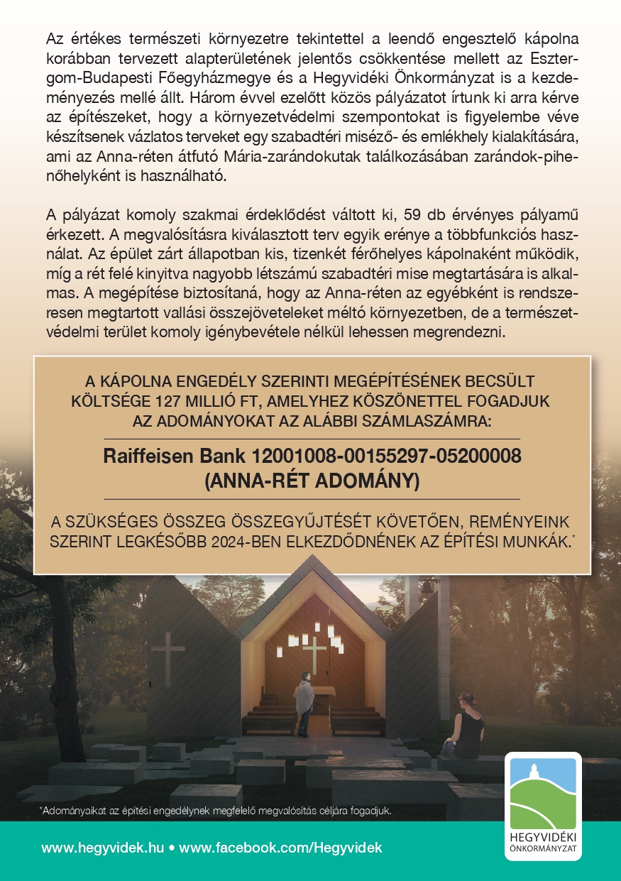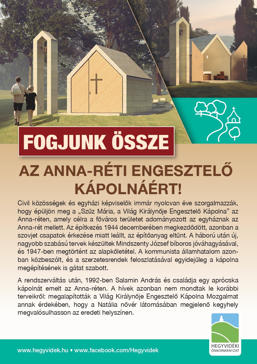 ► Adománygyűjtés az Anna-réti kápolnáért: https://hegyvidek.hu/aktualis/hirek/adomanygyujtes-anna-reti