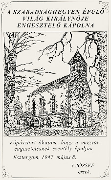 Az 1947. augusztus 15-én indult Boldogasszony Évének kiemelkedő eseménye volt 1947. szeptember 25-én - a Fogolykiváltó Boldogasszony ünnepéhez (szeptember 24.) kapcsolódva - a Svábhegyi (Szabadsághegyi) Világ Királynője Engesztelő Kápolna alapövének elhelyezése, amelyet Mindszenty József bíboros, hercegprímás celebrált. Mindszenty József újévi szózatában a Boldogasszony Évében, Esztergomban, 1948. január 1-jén így szólt:
