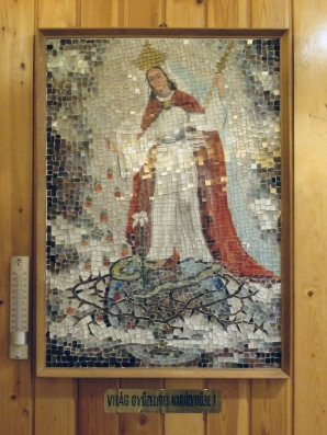 "Ne búsulj! Amit mondtam, megmondtam, a kápolna a Normafánál épül fel. Ez a kápolna nem akármilyen, helyettesíthető kápolna lesz. Ez a Szűzanya Világ Királynői székhelye lesz, ami nem a magyaroknak, hanem a Szűzanyának készül annak az országnak a földjén, amelyik az ő tulajdona. Jézus el fogja érni, hogy az általa tervezett kápolna ott és olyan formában épüljön fel, ahogyan azt ő eltervezte Szeplőtelen Édesanyjának a tiszteletére, kitüntetésére. Ebből a kápolnából kegyelmek áradata indul majd az egész világra." (Világ Győzelmes Királynőjének képe a Kútvölgyi Boldogasszony kápolnában. Saját fotó, 2022.)