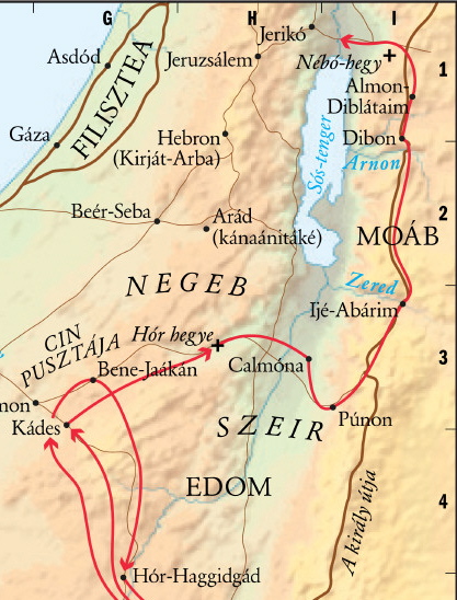 Hór hegyétől a Sás-tenger felé vezető úton indultak tovább, hogy megkerüljék Edom országát (Szám 21,4), mivel Edom királya fölfegyverzett katonákkal vonult ki ellenük, s nem engedte, hogy átvonuljon országán. A dél-kánaáni Arad királya is megtámadta Izraelt, de az Úr megsegítette népét. A helyet Hormának nevezték.