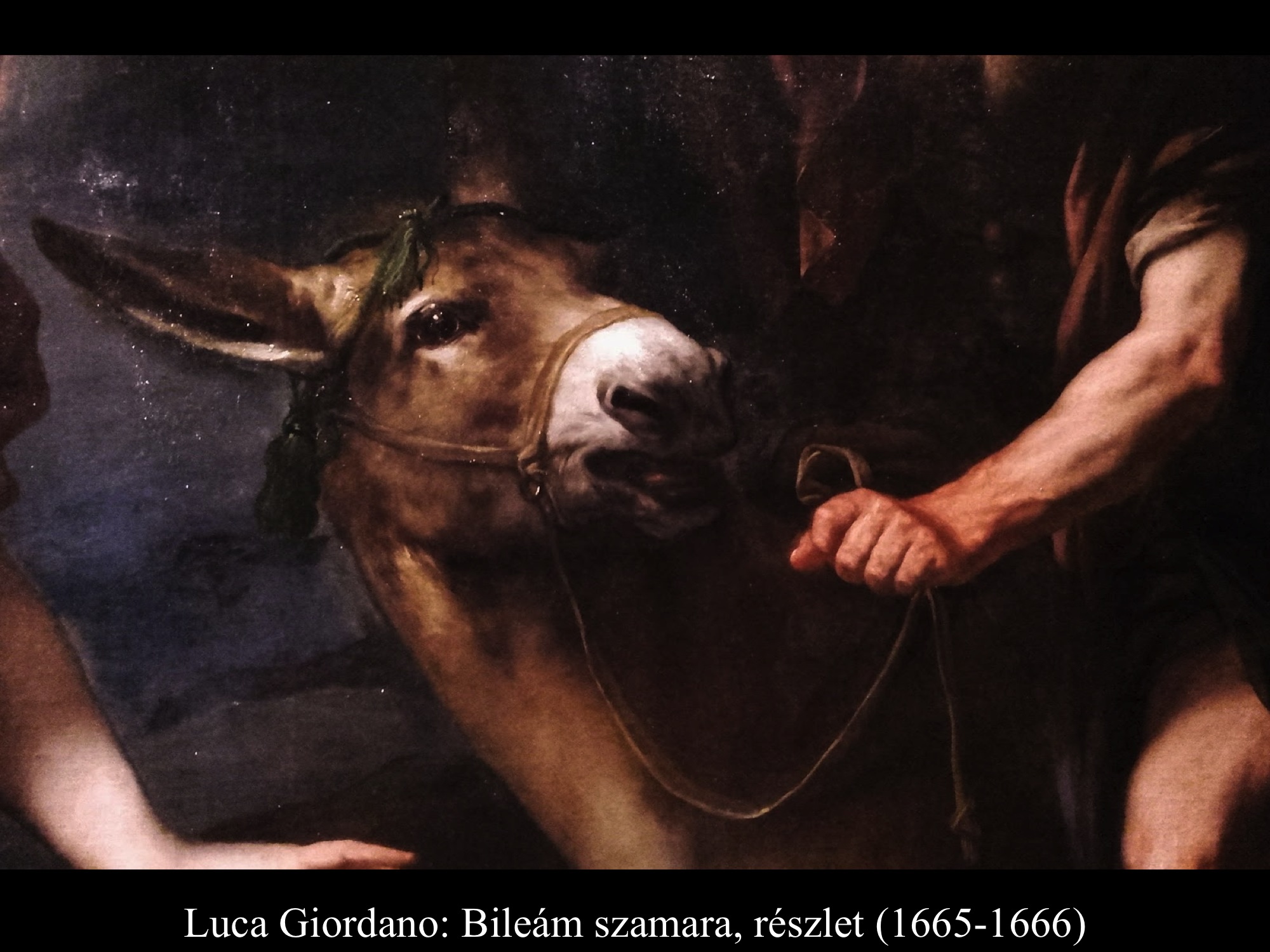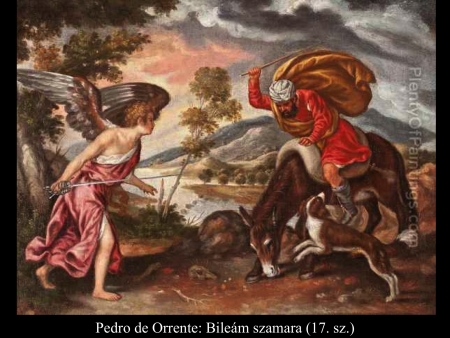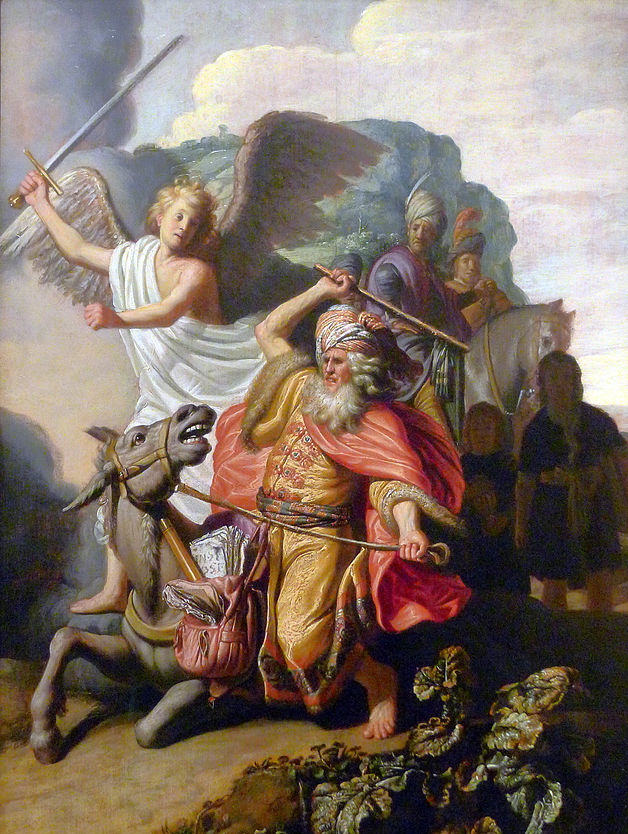 Pedro de Orrente (17. sz.), Gerrit Claesz Bleker (1634), Luca Giordani (1665-66) és egy ismeretlen spanyol festő (17. sz.) is azt a pillanatot festette meg, mikor az angyal közvetlenül elállta a szamár útját. A megtorpant állat mintha már száját beszédre nyitná a legtöbb képen, bár a Szentírás szövege szerint ezt csak azután teszi meg, miután összerogyik. Luca Giordano festményén gazdája felé fordítja fejét, az ismeretlen spanyol festő képén pedig egyenesen gazdája szemébe néz. Hűségét egy mellette ugráló kutyával hangsúlyozza Pedro de Orrente.