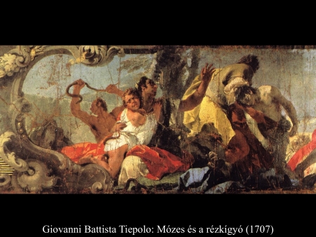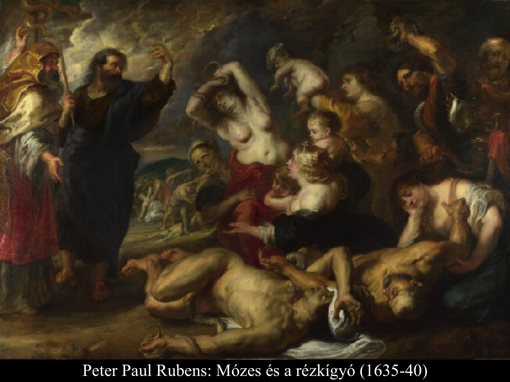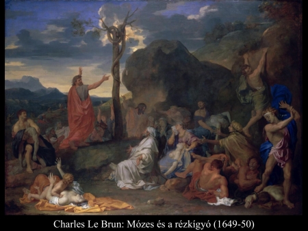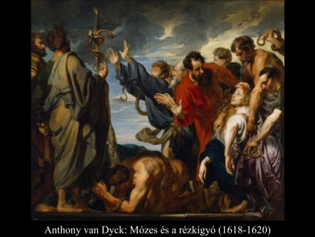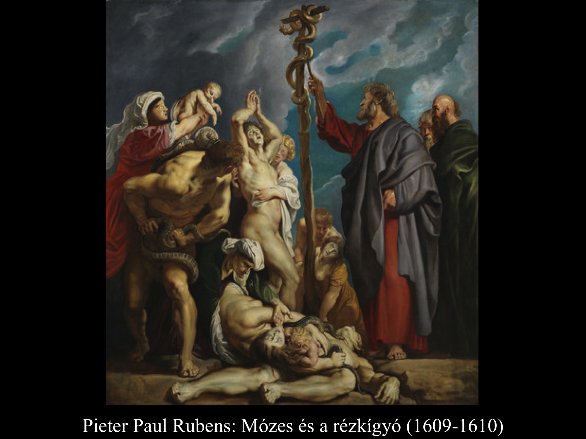 Pieter Paul Rubens (17. sz.), Anthony van Dyck (1618-20), Charles Le Brun (1649-50), Sébastien Bourdon (1653-54), Esteban March (17. sz.), Simon Vouet (ca.1630), Pierre Subleyras (18. sz.), Giovanni Antonio Pellegrini (1707) és Giovanni Battista Tiepolo (1707) képein életükért küzdő emberek és haldoklók láthatók a póznára erősített rézkígyó közelében.