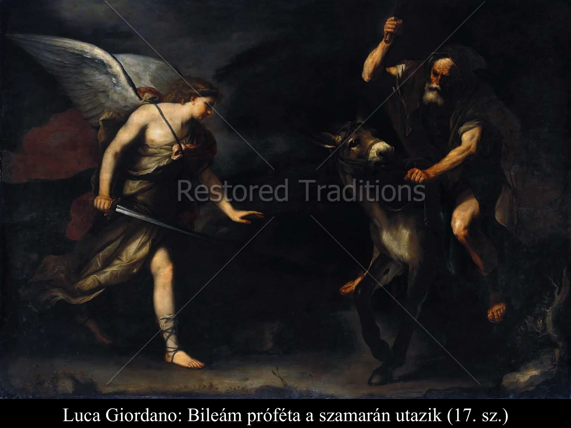 Az így felelt a követeknek, Moáb és Midián véneinek: „Töltsétek itt az éjszakát, hogy megadhassam a választ, aszerint, hogy mit mond az Úr.” Moáb vezetői tehát Bileámnál maradtak. (Szám 22,8) Isten azonban Bileámhoz fordult: „Nem szabad velük menned! Nem szabad megátkoznod a népet, mert áldott!” Bileám tehát reggel, amikor fölkelt, ezt mondta Balak vezéreinek: „Térjetek vissza országotokba! Mert az Úr nem engedi, hogy veletek menjek.” A moábita vezérek erre útra keltek, s amikor Balakhoz megérkeztek, jelentették: „Bileám nem volt hajlandó velünk jönni.” Erre Balak újra küldött vezéreket, többet s tekintélyesebbeket, mint először. Amikor megérkeztek Bileámhoz, így szóltak: „Ezt üzeni Cippor fia, Balak: Ne vonakodj, hanem gyere hozzám! Gazdagon megjutalmazlak, s minden kívánságodat teljesítem, amivel elém állsz. Gyere hát, s átkozd meg nekem ezt a népet!” De Bileám ezt a választ adta Balak követeinek: „Ha annyi ezüstöt és aranyat ad is Balak, amennyi a házába fér, akkor sem szeghetem meg az Úrnak, Istenemnek a parancsát sem kis, sem nagy dologban. De azért ti is töltsétek itt az éjszakát, hogy megtudakoljam, mit mond még nekem az Úr!” El is jött Isten éjszaka Bileámhoz, s ezt mondta neki: „Azért jöttek ezek az emberek, hogy magukkal hívjanak? Kelj hát fel, s menj el velük. De csak azt szabad tenned, amit majd mondok neked.” Így reggel Bileám fölkelt, fölnyergelte szamarát és elment Moáb vezéreivel. (Szám 22,12-21)