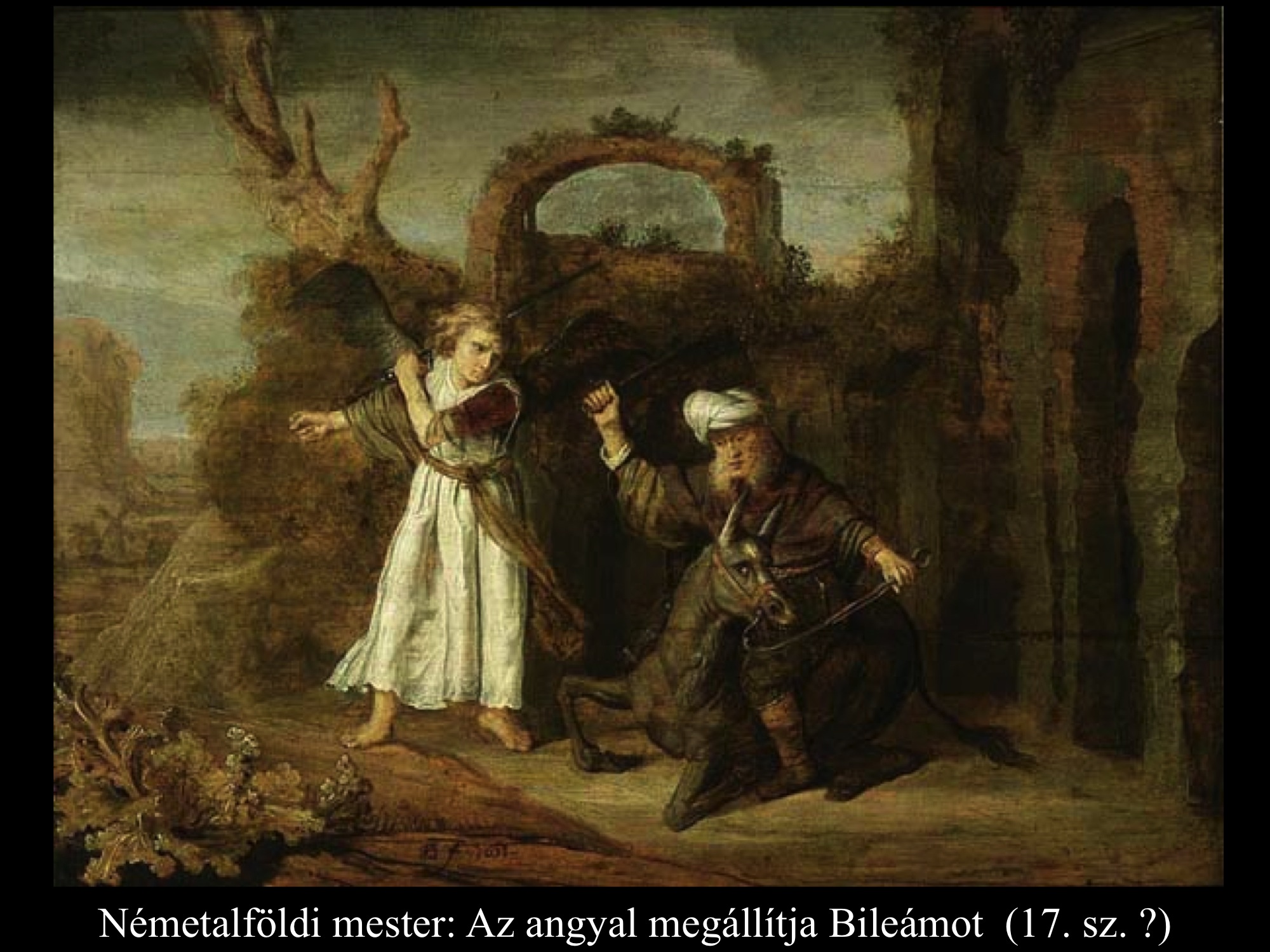 Épp most rogyott össze a szamár Bileám alatt egy ismeretlen németalföldi festő (17. sz.?) képén. Az összerogyott állat hátán festette meg Bileámot az az ismeretlen német festő (17. sz.) is, kinek szamara bánatosan, lehajtott fejjel tűri az ütéseket. Angyalt nem látunk ez utóbbi képen, Bileám sem tudja még, hogy szamara miért nem engedelmeskedik neki.