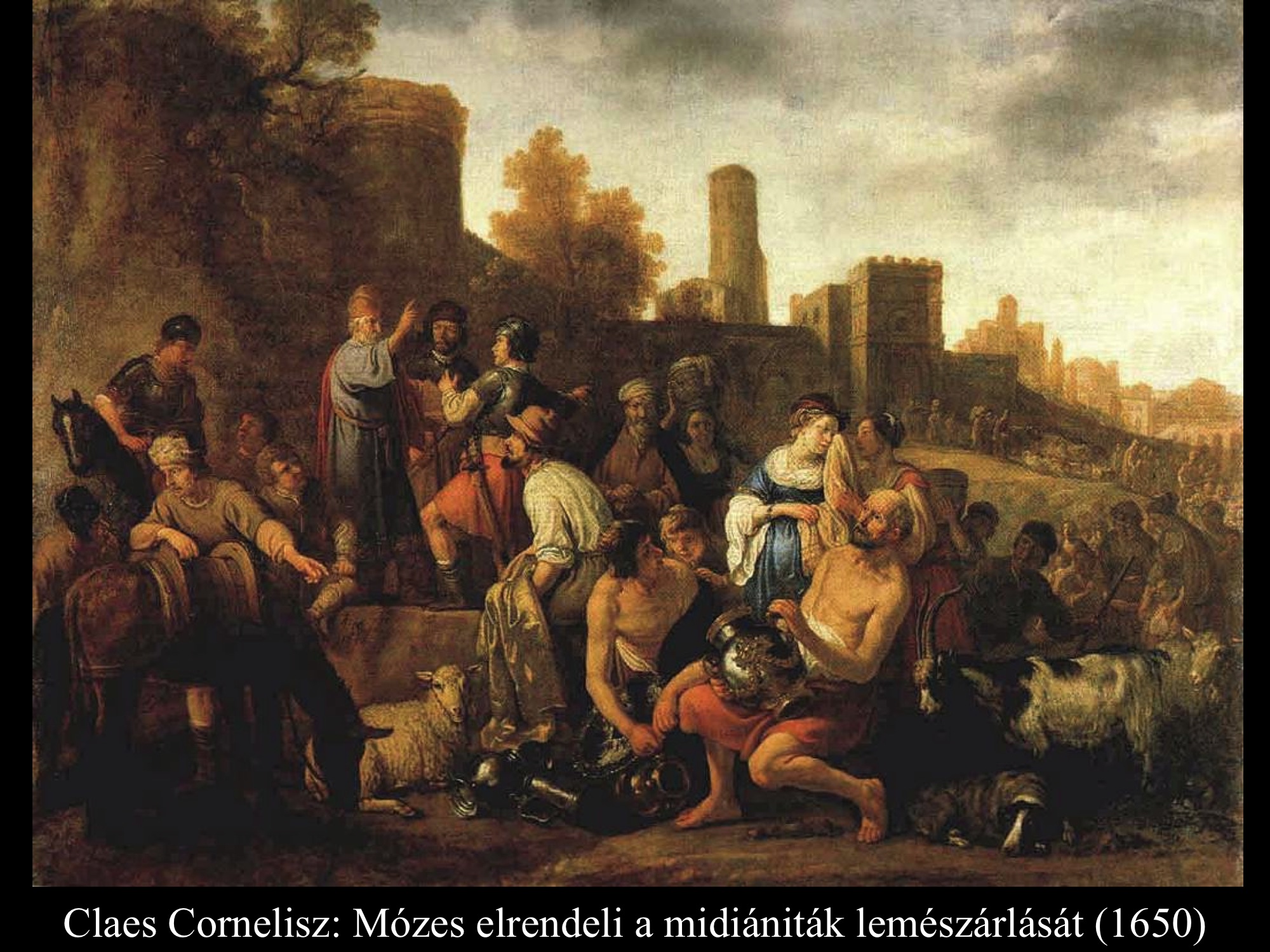 Claes Cornelisz (1650) festményén Mózes épp az asszonyok sorsáról és a zsákmány megtisztításáról dönt, miután rájuk förmedt: „Csakugyan életben hagytatok minden asszonyt? Épp ők voltak azok, akik Bileám biztatására arra csábították Izrael fiait, hogy Peor kedvéért hűtlenül elhagyják az Urat, azért érte utol a vész az Úr közösségét.