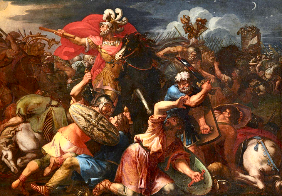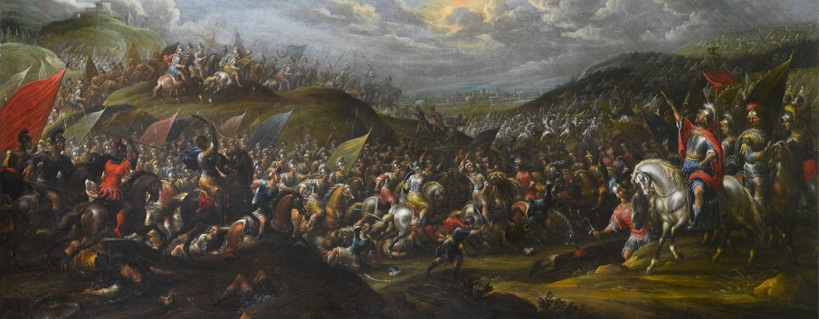 Nicolas Poussin (1624-26) és Francois Perrier (17. sz.) képein jól látható mindkét égitest a heves csatajelenetek felett.