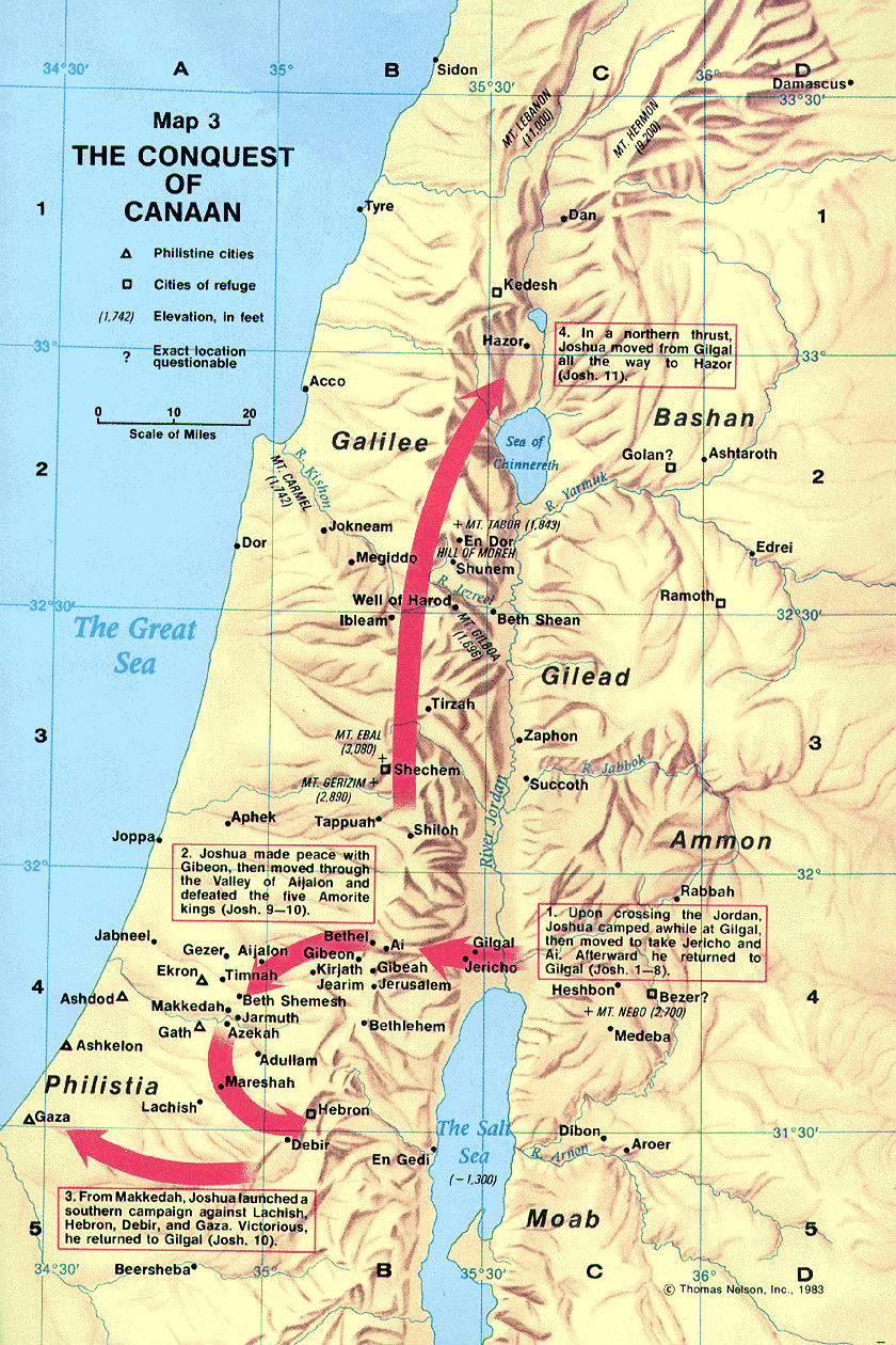 Izrael vándorlásának útvonala KÁNAÁN MEGHÓDÍTÁSA Kiemelt epizód: Józsue megállítja a Napot Gibeon fölött
