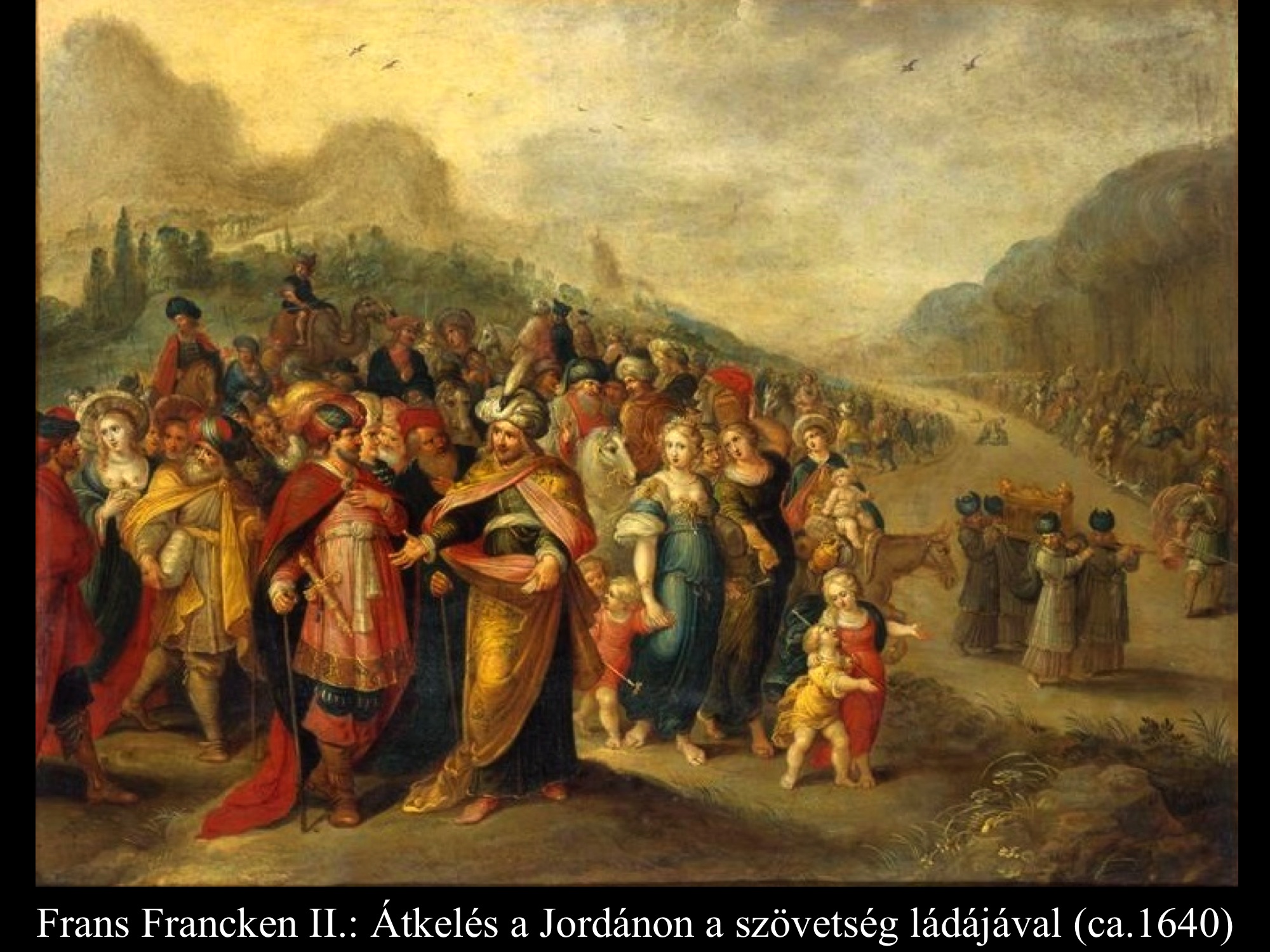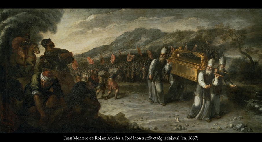 A hírszerzők visszatértek Józsuéhoz, aki Izrael fiaival a Jordán partján táborozott le. Három nap múlva így szólt a néphez: „Szentelődjetek meg holnapra, mert az Úr csodát tesz körötökben.” A papoknak pedig ezt mondta Józsue: „Emeljétek föl a szövetség ládáját és haladjatok vele a nép élén!” Ezek fölemelték a szövetség ládáját és a nép előtt haladtak. (Józs 3,5-6) A nép 2000 könyöknyi távolságra követte őket Józsue parancsa szerint. Ahogy a ládát vivő papok lába a vizet érte, a víz folyása megállt, s egyetlen nagy tömeggé állt össze. A száraz folyómederben álltak mindaddig, míg az egész nép - köztük 40.000 felfegyverzett harcos - át nem kelt Jerikóval szemben.