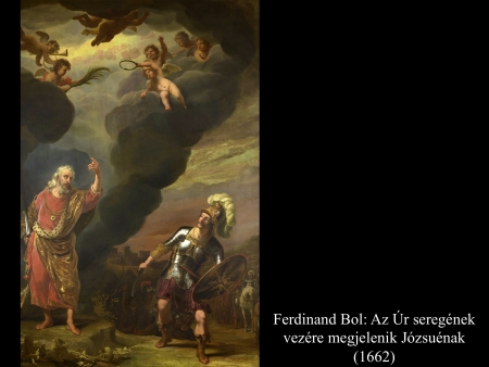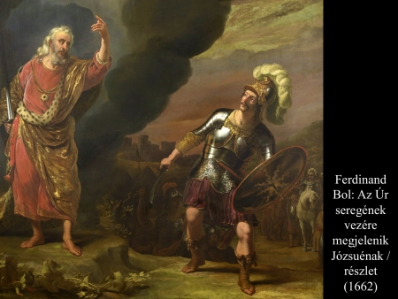 Amikor Józsue Jerikó közelében tartózkodott, fölemelte szemét és látott egy embert: előtte állt, s kivont kard volt a kezében. Józsue odament hozzá és megkérdezte tőle: „Hozzánk tartozol vagy ellenségeinkhez?” Azt felelte: „Nem, hanem az Úr seregének vagyok a vezére, most érkeztem…” Józsue arcra borult előtte a földön, hódolt előtte és megkérdezte: „Mit parancsol az én Uram szolgájának?” Az Úr seregének vezére azt válaszolta: „Vedd le lábadról a sarut, mert a hely, ahol állasz, szent.” Józsue megtette. (Józs 5,13-15) Ferdinand Bol (1662) ősz férfiként ábrázolta az Úr seregének vezérét. Az égen angyalok láthatók a dicsőség és győzelem jelképeivel, a pálmaággal és koszorúval.