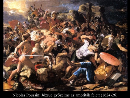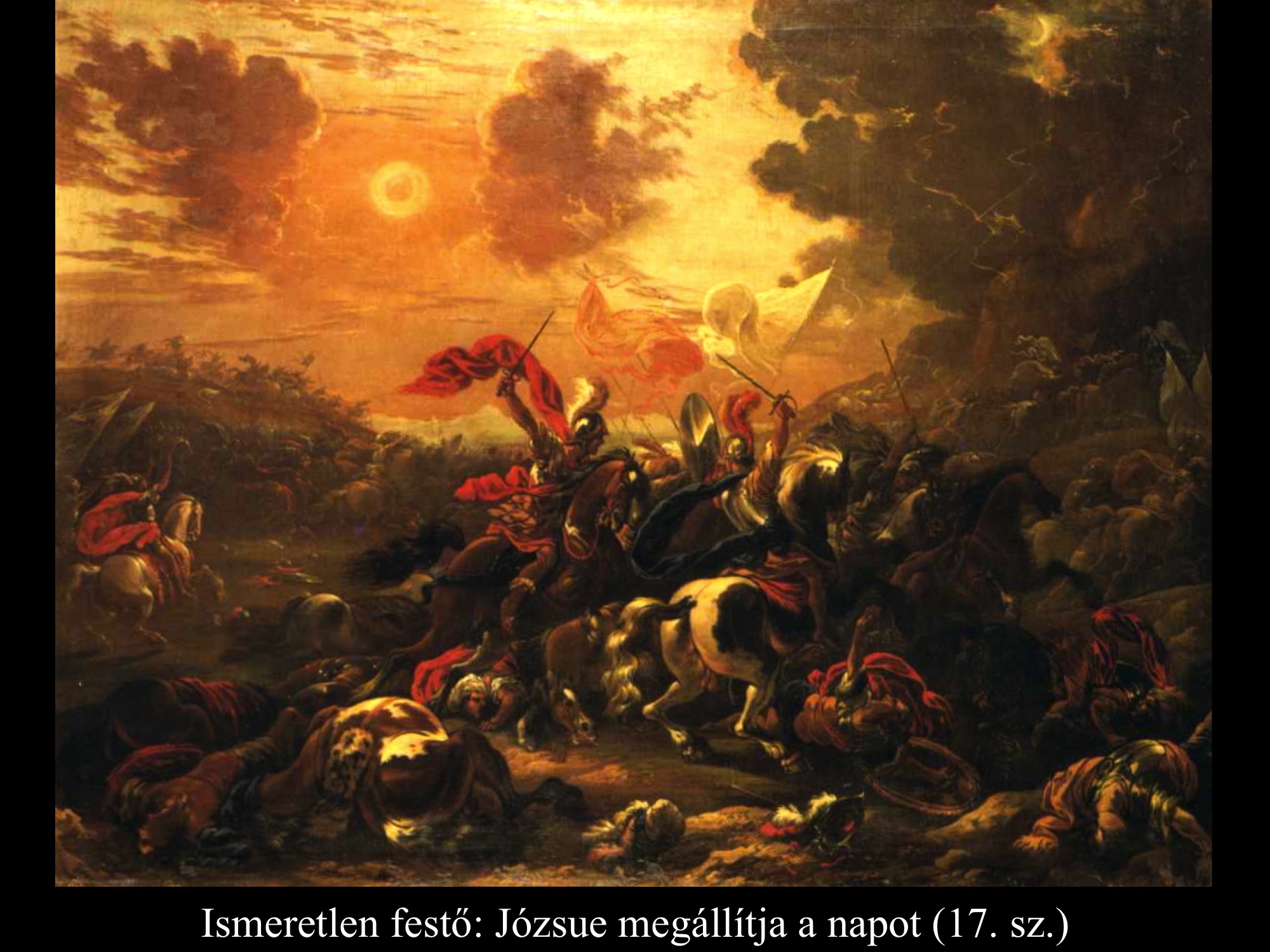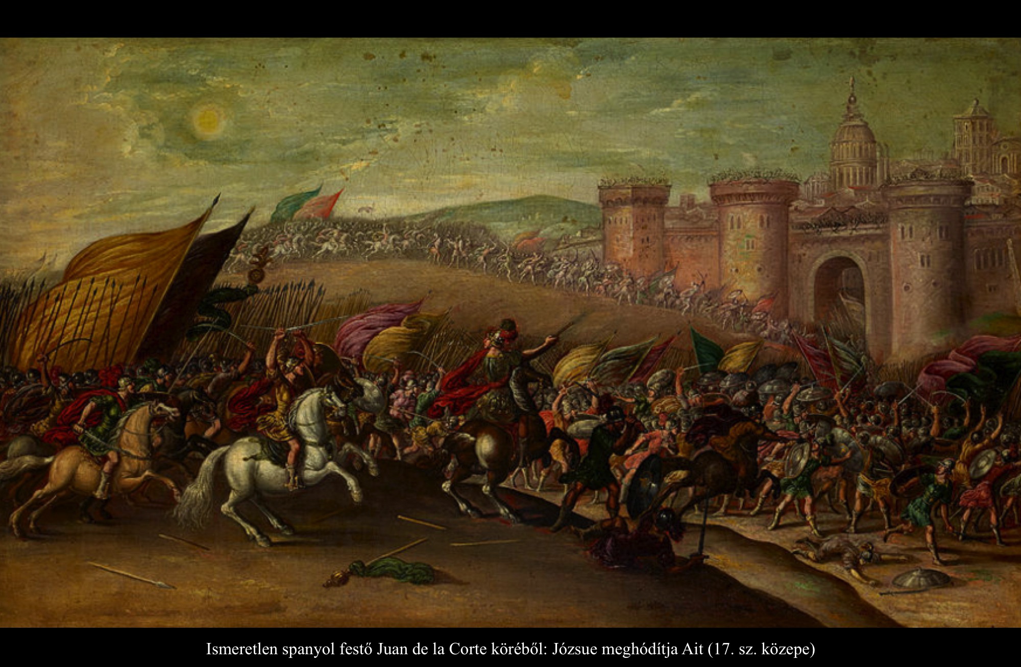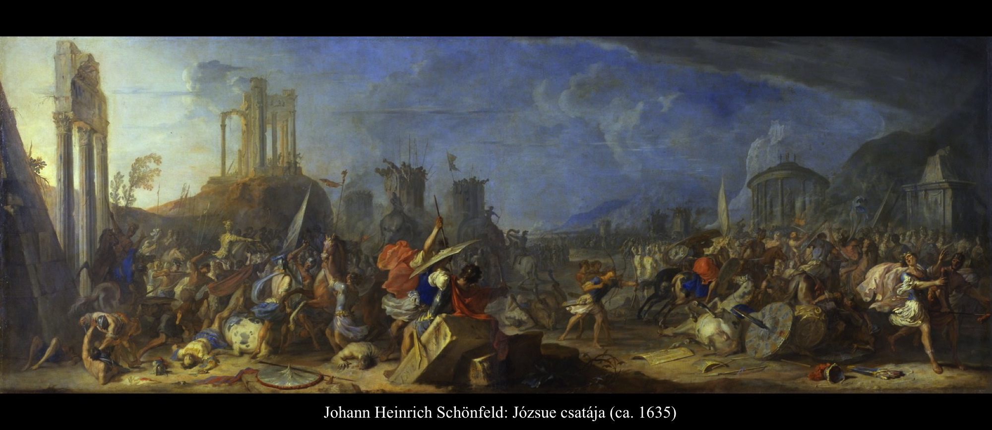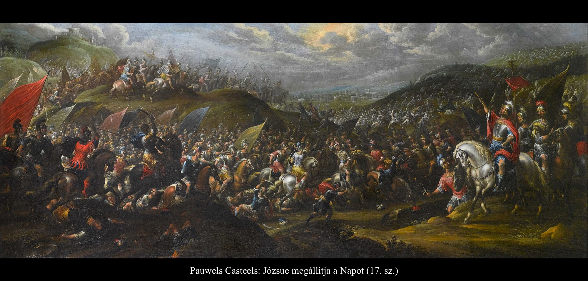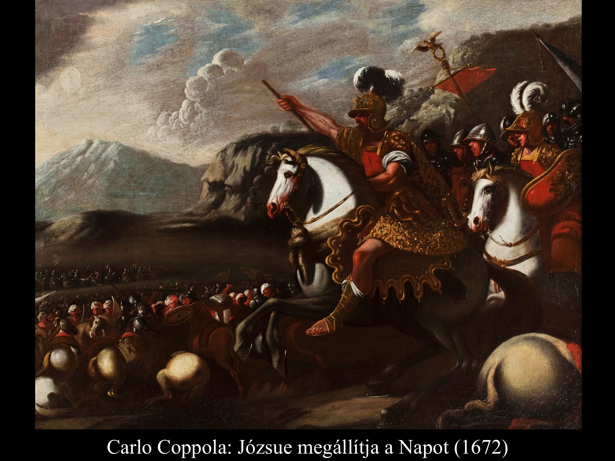"Nap, állj meg Gibeon fölött, s Hold, Ajalon völgye fölött!" A Nap megállt az ég közepén, s csaknem egy egész napig halogatta lenyugtát. Se azelőtt, se azután nem volt még egy olyan nap, amelyen az Úr hallgatott volna embernek a szavára. Így harcolt az Úr Izraelért, s Józsue elfoglalta népével Kánaán földjét. Tizenhat barokk festmény tudósít róla, hogy ért célba az egyiptomi szolgaságból kiszabaduló Izrael 40 évig tartó vándorlása után.