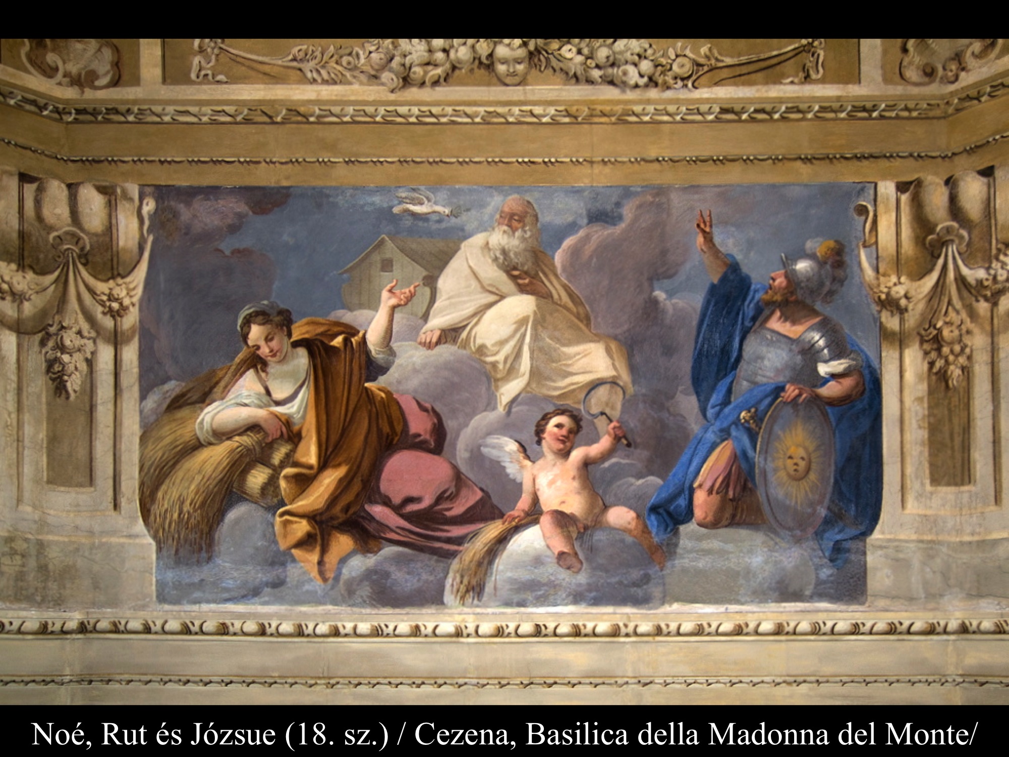 A cezenai dóm falképeinek egyikén (18. sz.) Józsue alakja is feltűnik Noé és Rut mellett. Józsue pajzsán a Nap látható, mely szavára nem nyugodott le addig, míg meg nem nyerte döntő csatáját az amoriták ellen. De vajon milyen üzenetet hordoz a kép a különböző korokban élő három ószövetségi személy egymás melletti megjelenítése által? A kulcs a szövetség ládájának motívuma. Noé Isten parancsa szerint járt el, megépítette Istennel kötött szövetségének "ládáját", a bárkát, és megmenekült a vízözön pusztításától. Józsue is hallgatott az isteni útmutatásra, s a Jordán száraz medrén kelhetett át a szövetség ládájával, amit el is juttatott az ígéret földjére népével együtt. Rut bizalma is megingathatatlan volt az Úrban, hűsége egy másik nő igenjét vetíti előre, Máriáét. A Szűzanya maga az élő frigyláda, ki méhében hordozta az Isten fiát.