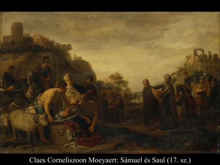 (...) Az Úr egy nappal azelőtt, hogy Saul megérkezett, ezt a kinyilatkoztatást adta Sámuelnak: „Holnap ebben az időben küldök neked Benjamin hegyvidékéről egy embert. Azt kend föl népem, Izrael fejedelmévé. Ő fogja majd népemet a filiszteusok kezéből kiszabadítani. Láttam ugyanis népem nyomorúságát, jajszavuk felhatolt hozzám.” Amikor Sámuel észrevette Sault, az Úr nyomban tudtára adta: „Ez az az ember, akiről beszéltem neked. Ő uralkodjék népem fölött.” Akkor Saul ott a kapuban odalépett Sámuelhez és megszólította: „Mondd, hol van a látóember háza?” Sámuel így felelt Saulnak: „Én vagyok a látóember. Kísérj fel a magaslatra. Ma velem kell ennetek. Holnap reggel aztán elmehettek, de előbb mindent megmondok neked, ami a szívedet nyomja. Ami a nőstény szamarakat illeti, amelyek három nappal ezelőtt elkóboroltak, miattuk ne aggódj, előkerültek. Egyébként kié lesz Izrael egész gazdagsága? Hát nem a tiéd és atyád házáé?” Saul ezt válaszolta: „Hát nem Benjamin fiai közül való vagyok, Izrael legkisebb törzséből? És nemzetségem nem a legkisebb-e Benjamin törzsében? Miért mondasz hát ilyeneket nekem?” (1 Sám 9,15-21)