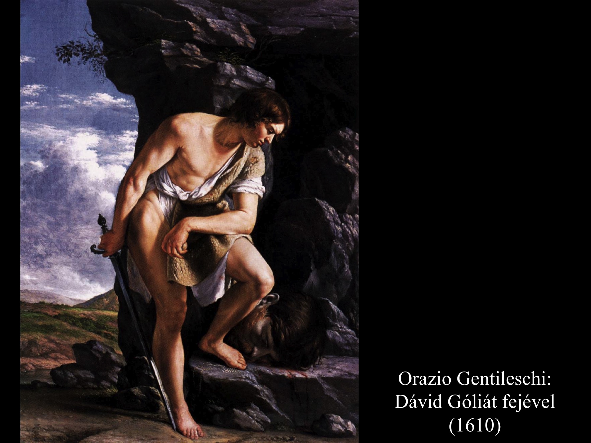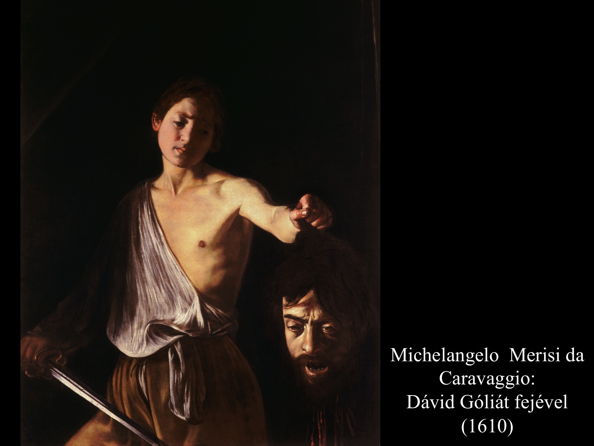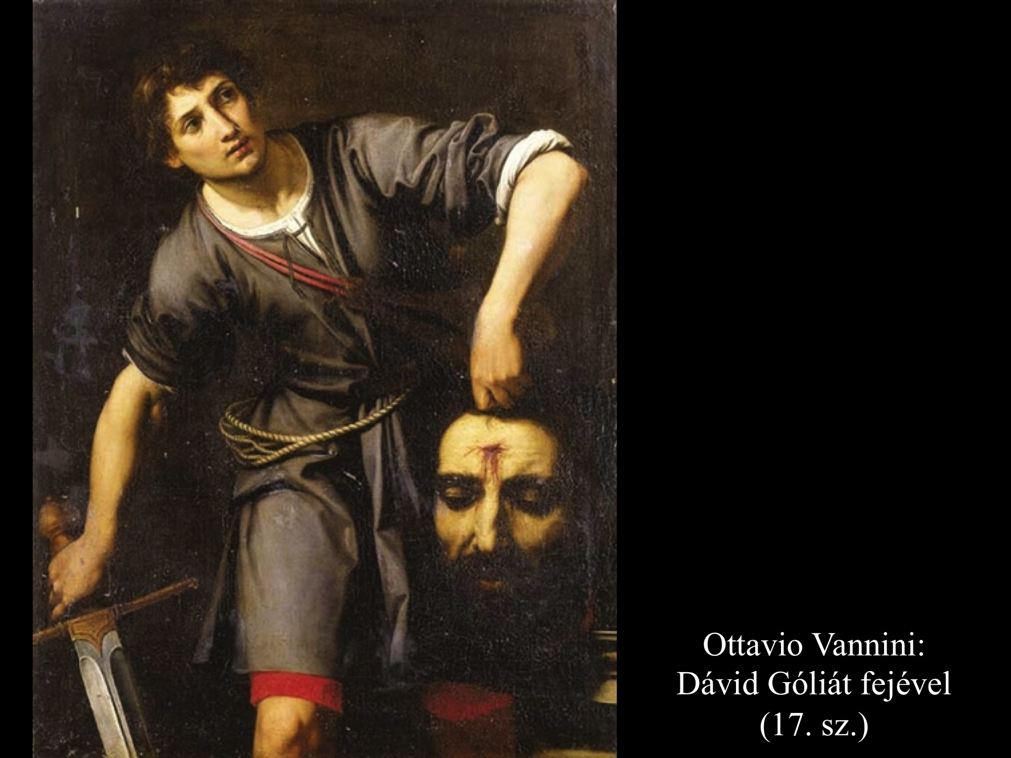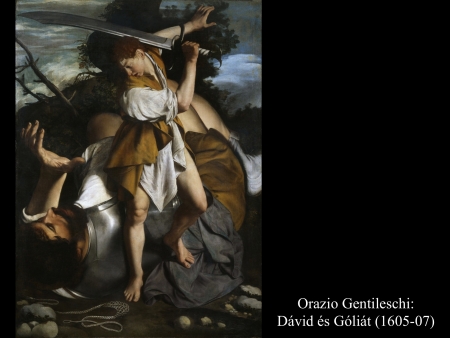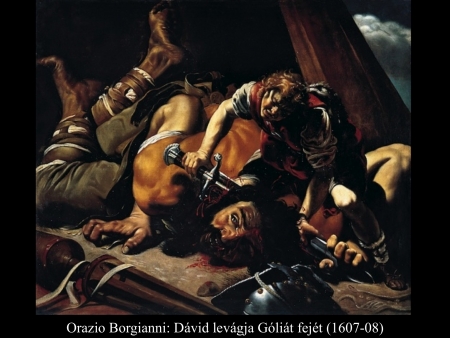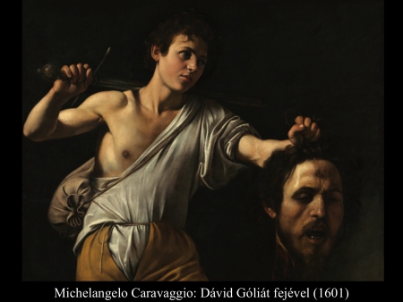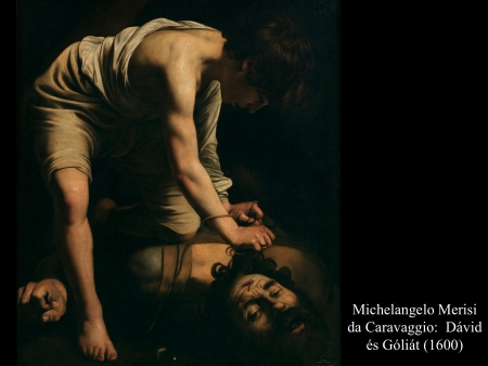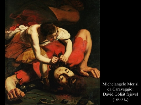 Micelangelo Merisi da Caravaggio (1600) festményein Dávid már a levágott fejet kötözi, hogy magával tudja vinni.