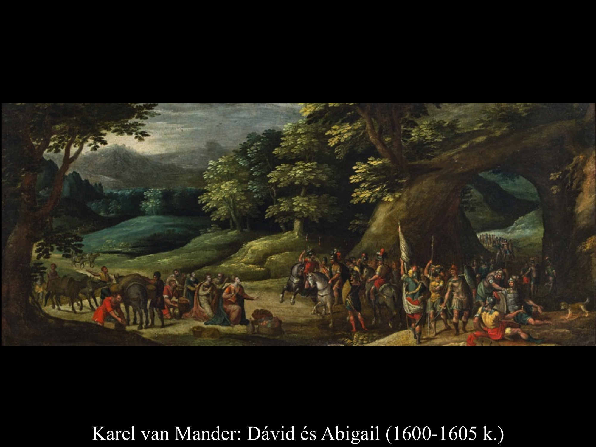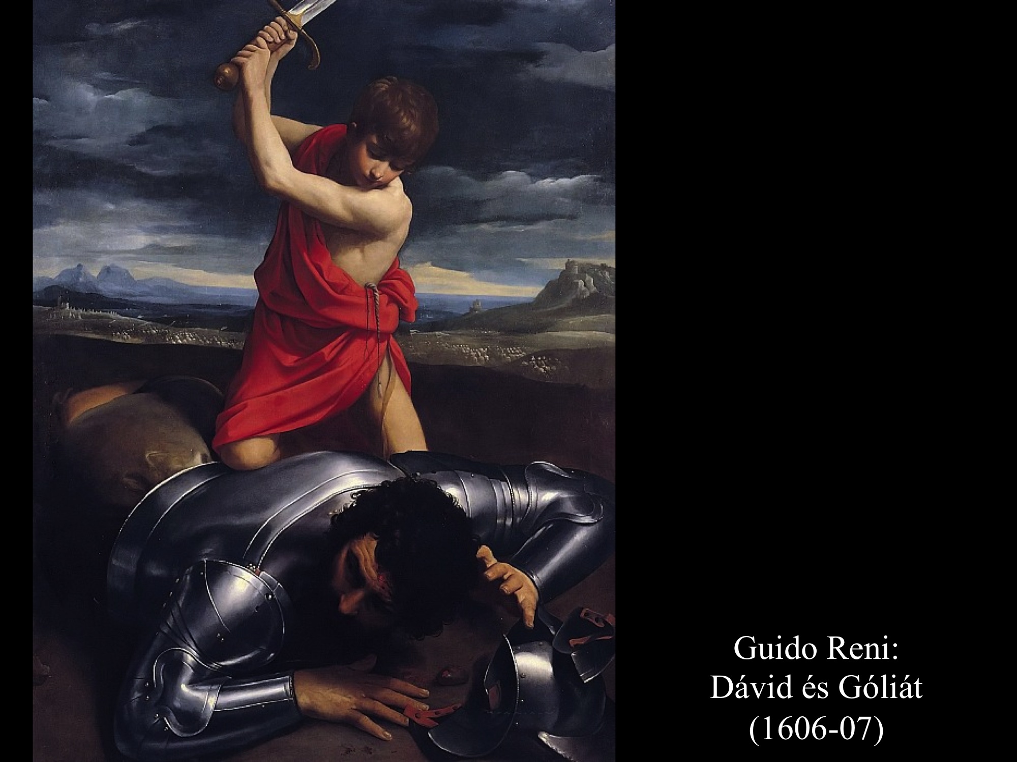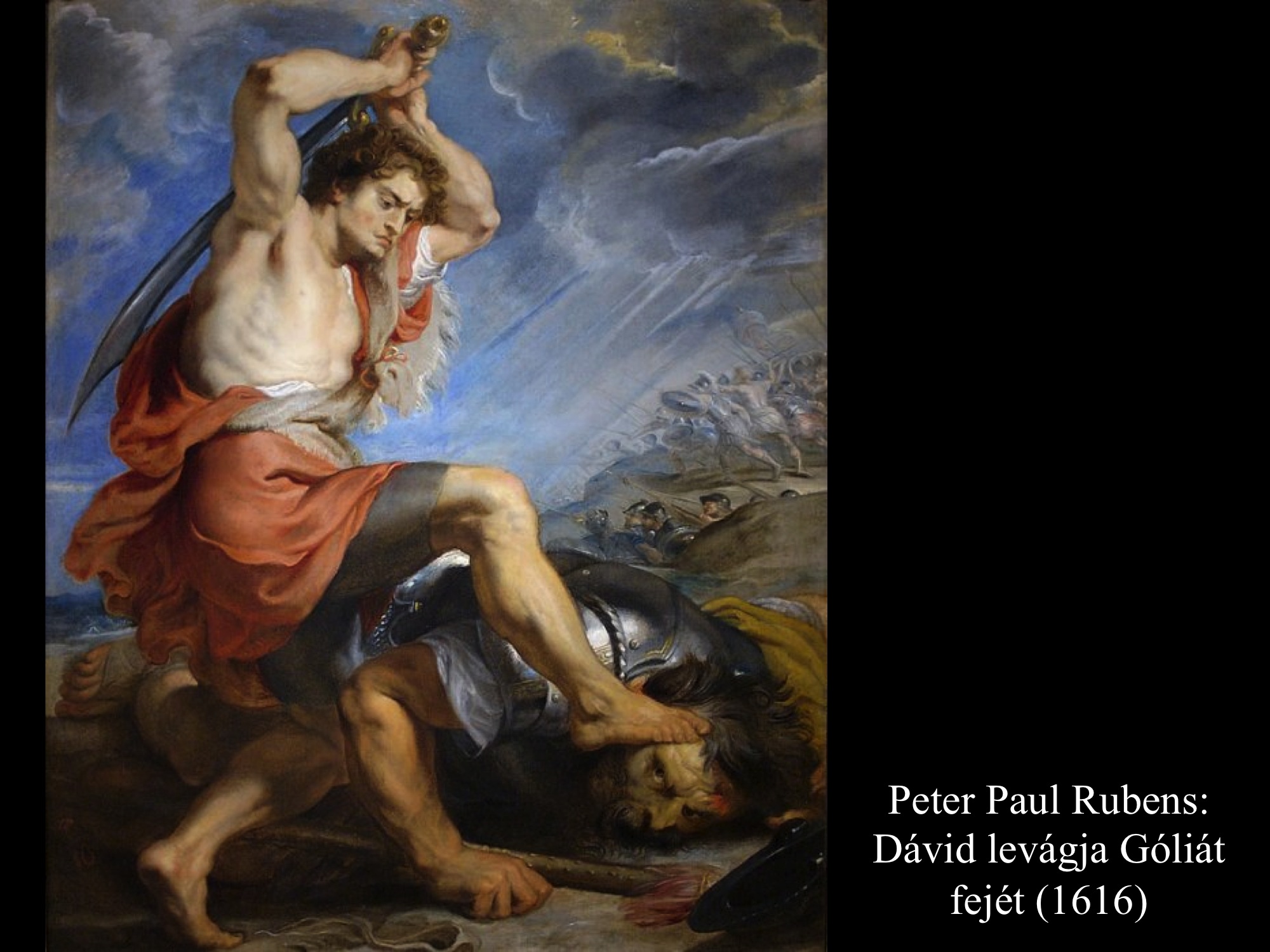Micelangelo Merisi da Caravaggio (1600) festményein Dávid már a levágott fejet kötözi, hogy magával tudja vinni.