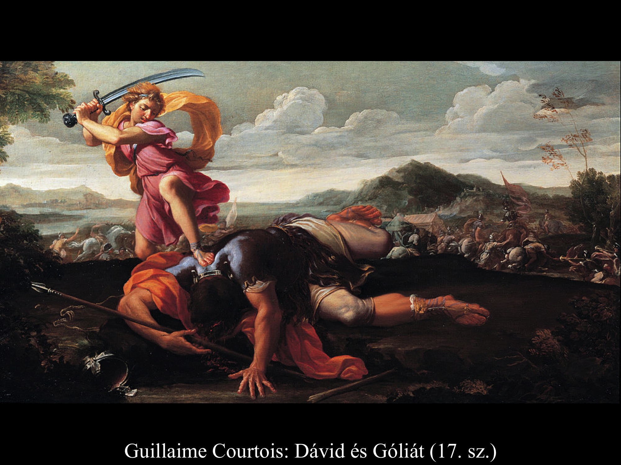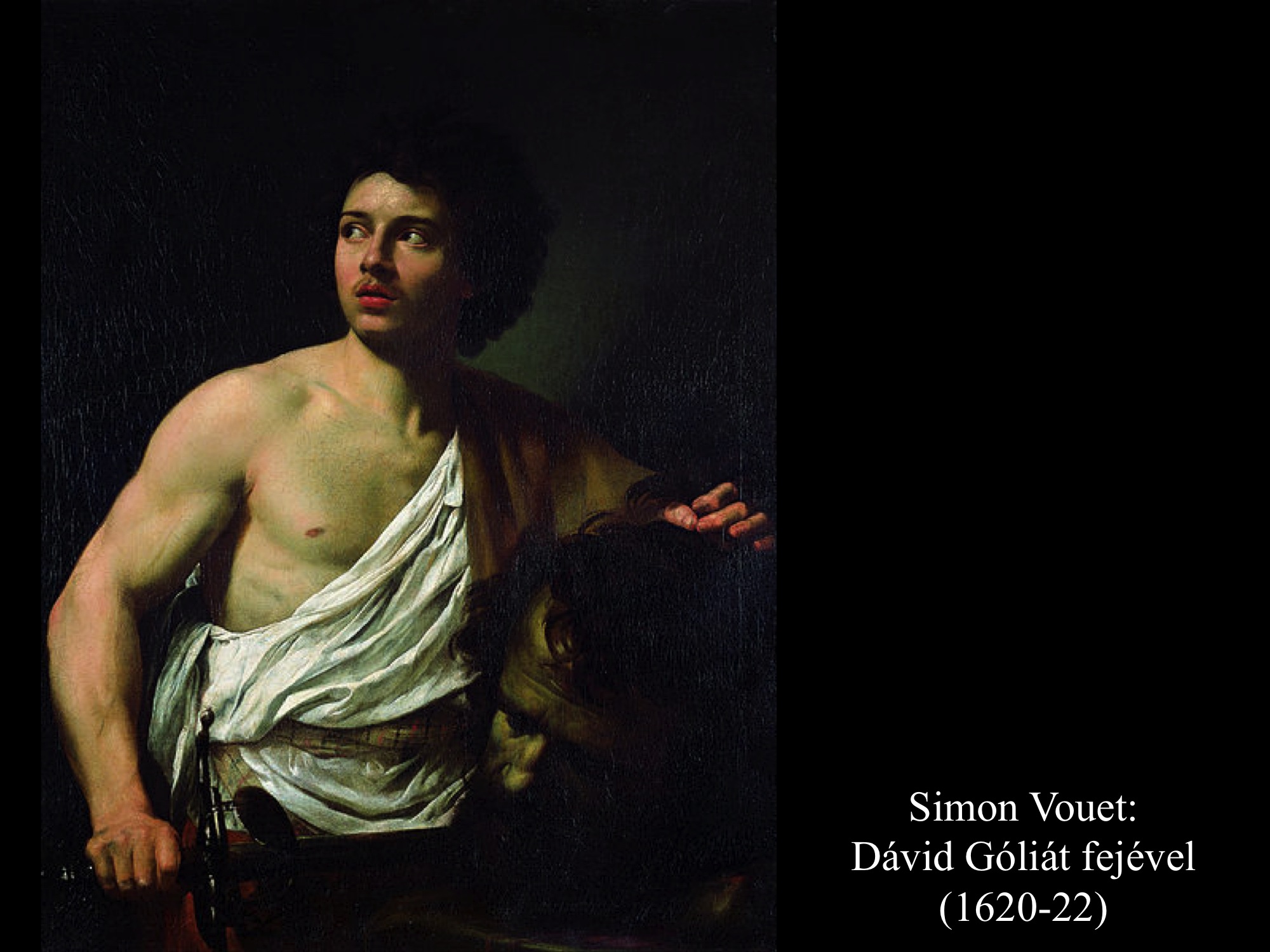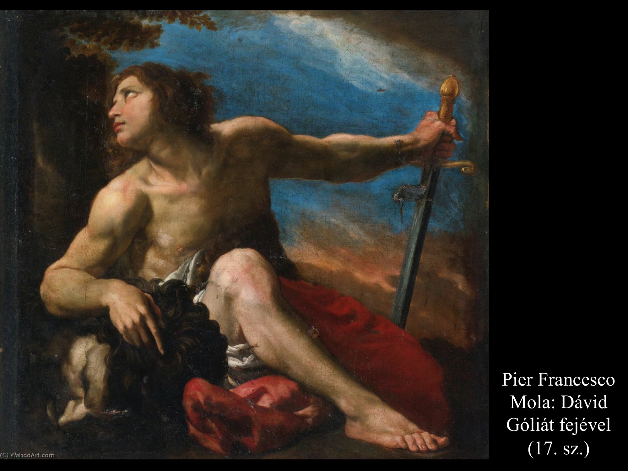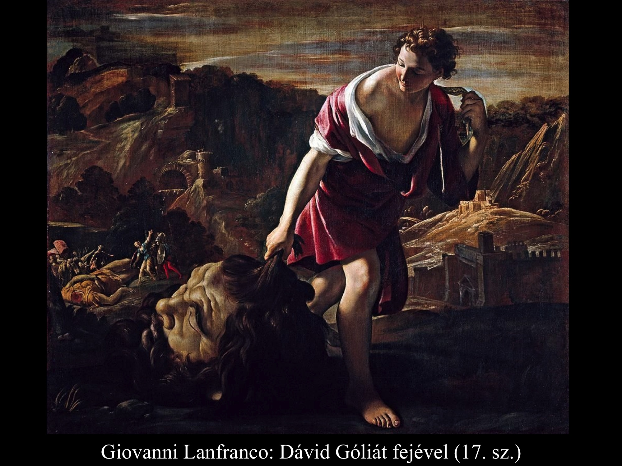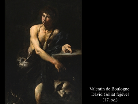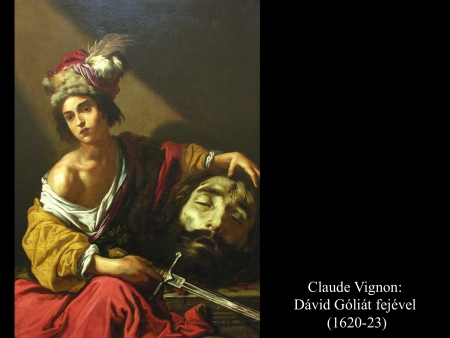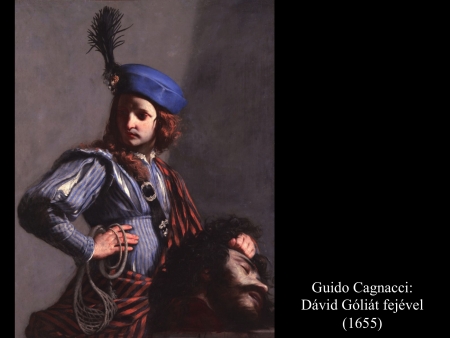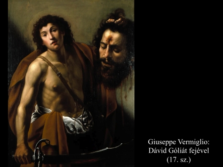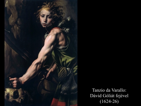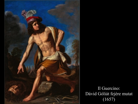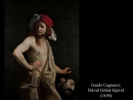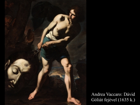 Andrea vaccaro (1635) és Giovanni Lanfranco (17. sz.) Dávidja Góliát fejét vonszolja maga után. Fegyverek nincsenek nála, sátrában hagyta őket.