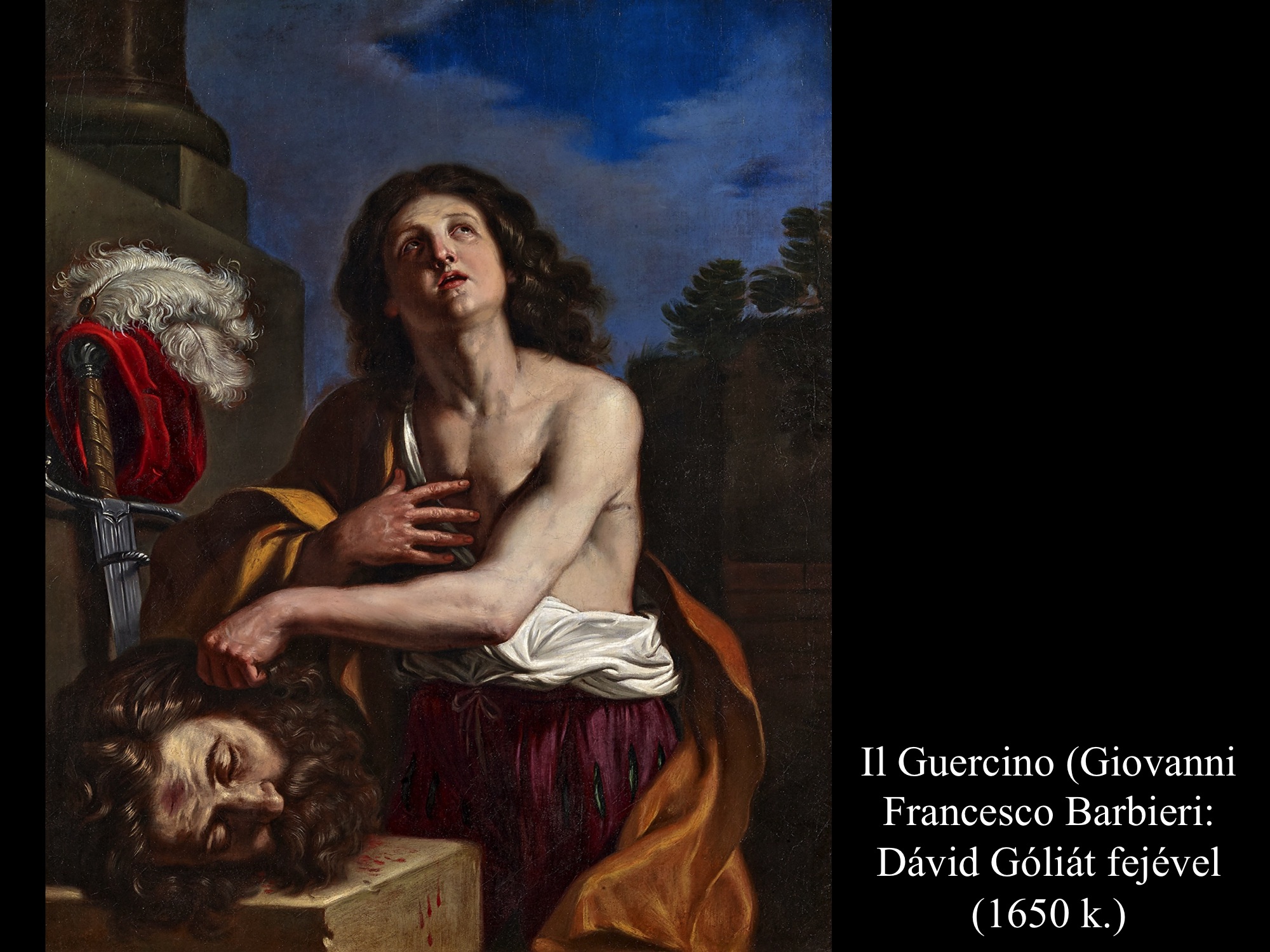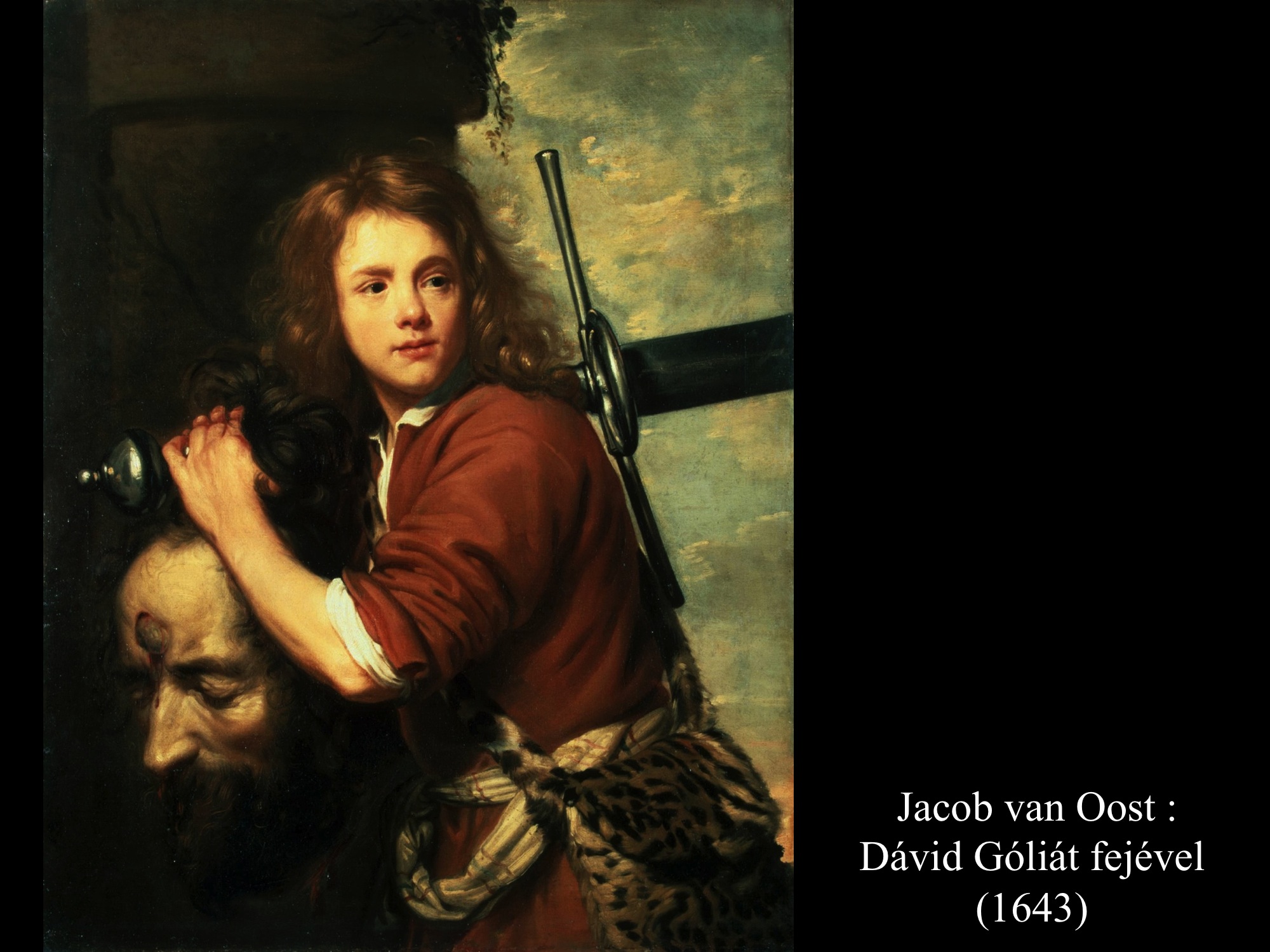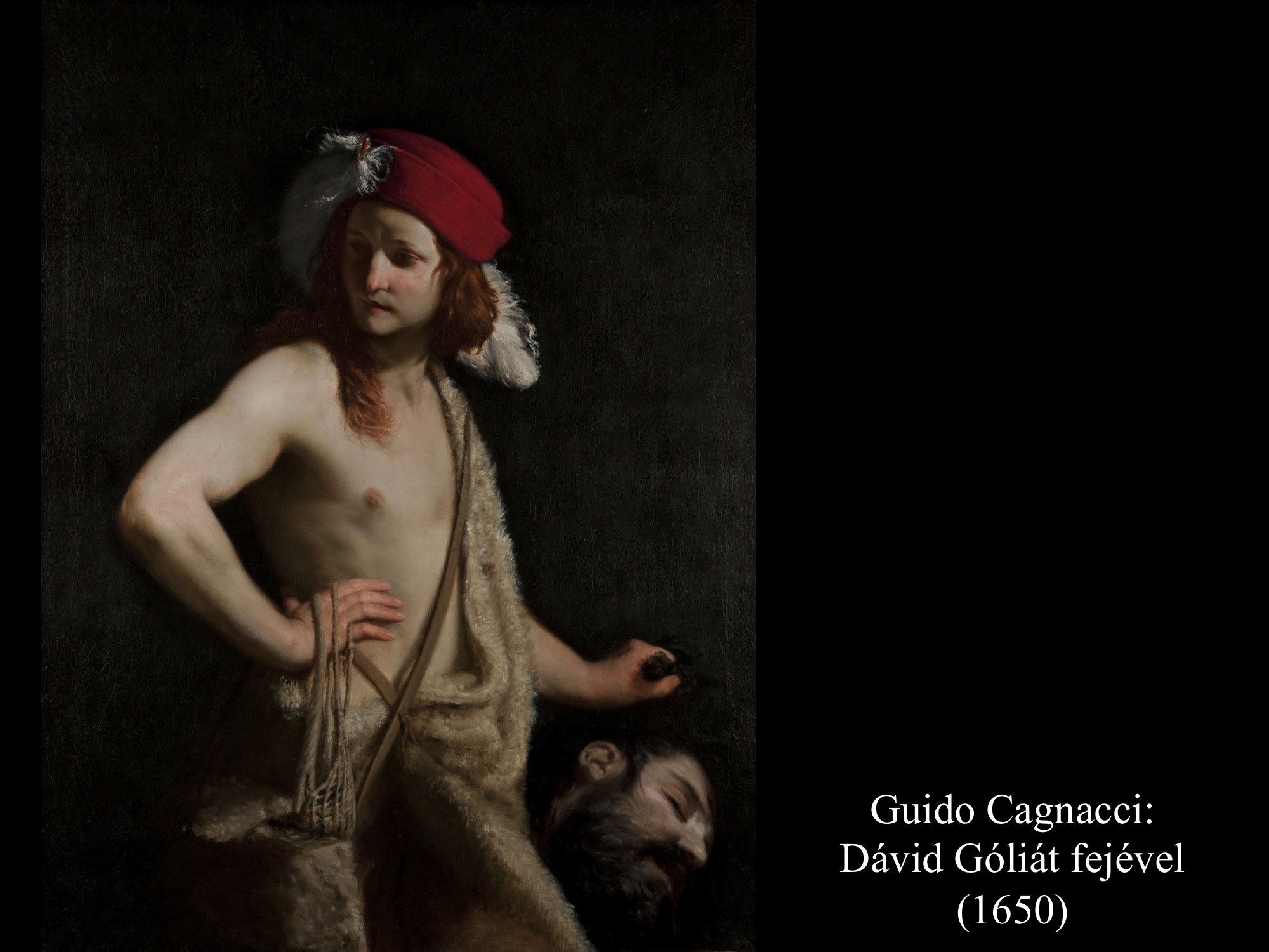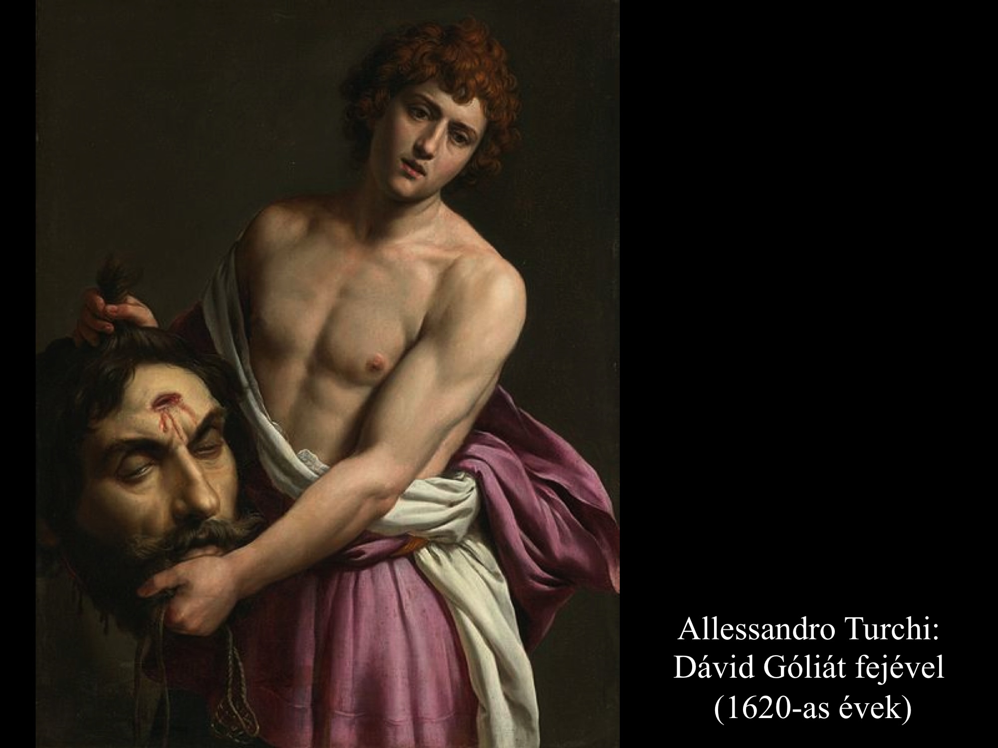 Andrea vaccaro (1635) és Giovanni Lanfranco (17. sz.) Dávidja Góliát fejét vonszolja maga után. Fegyverek nincsenek nála, sátrában hagyta őket.