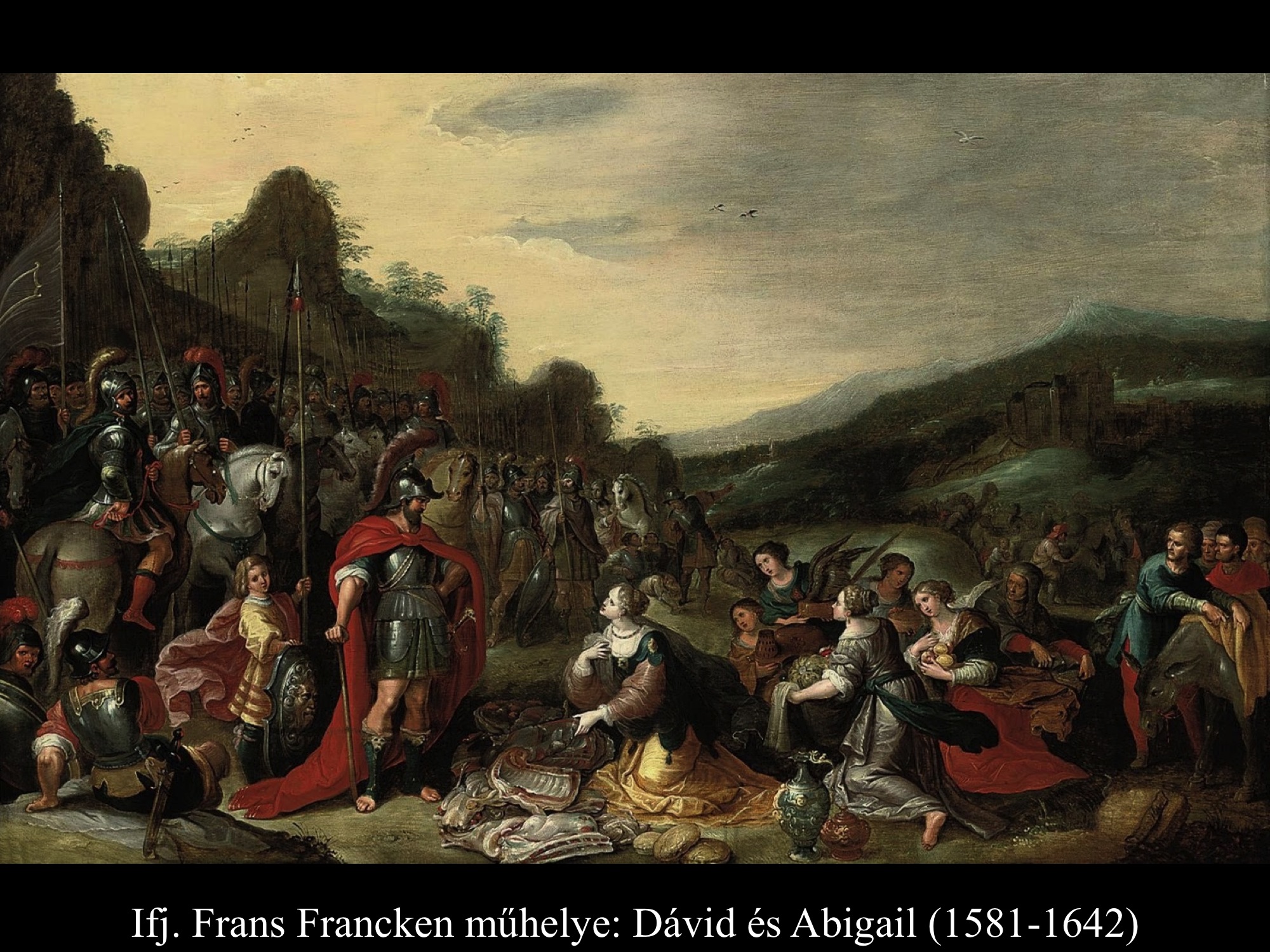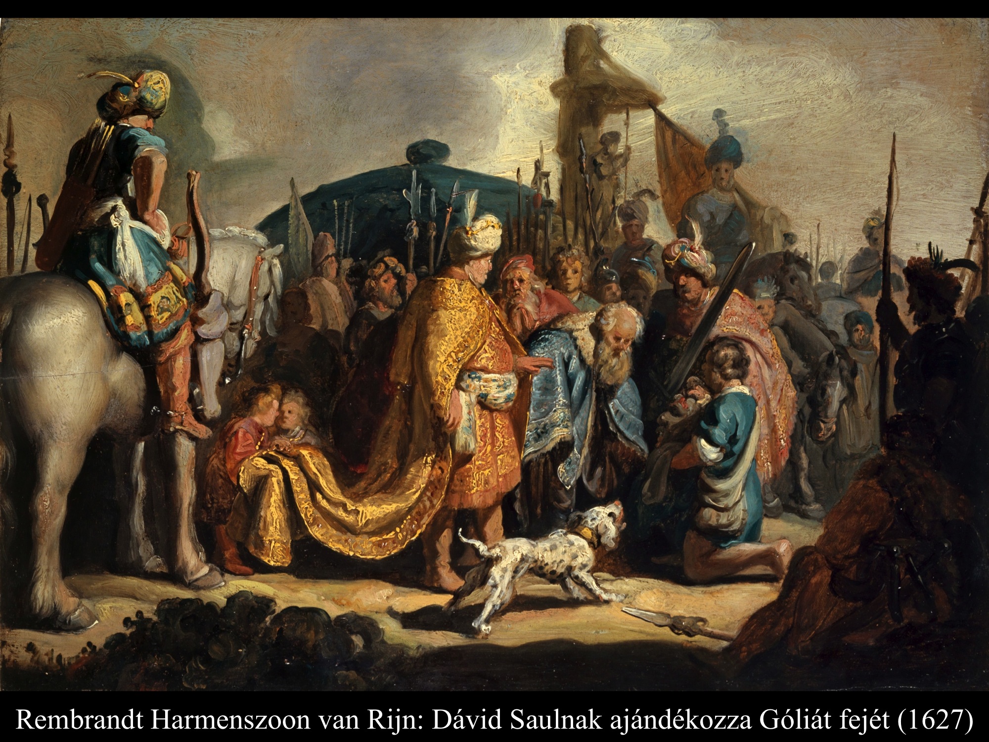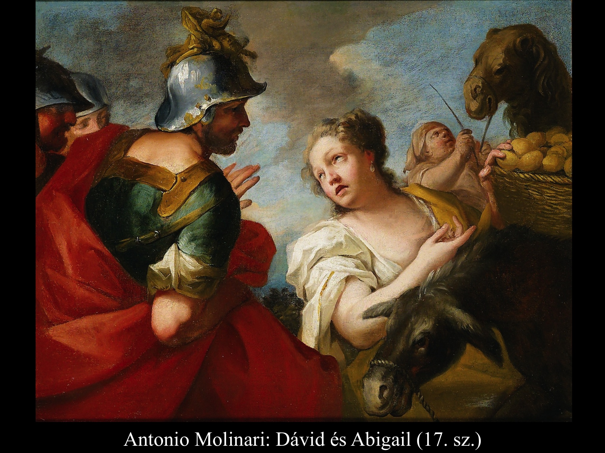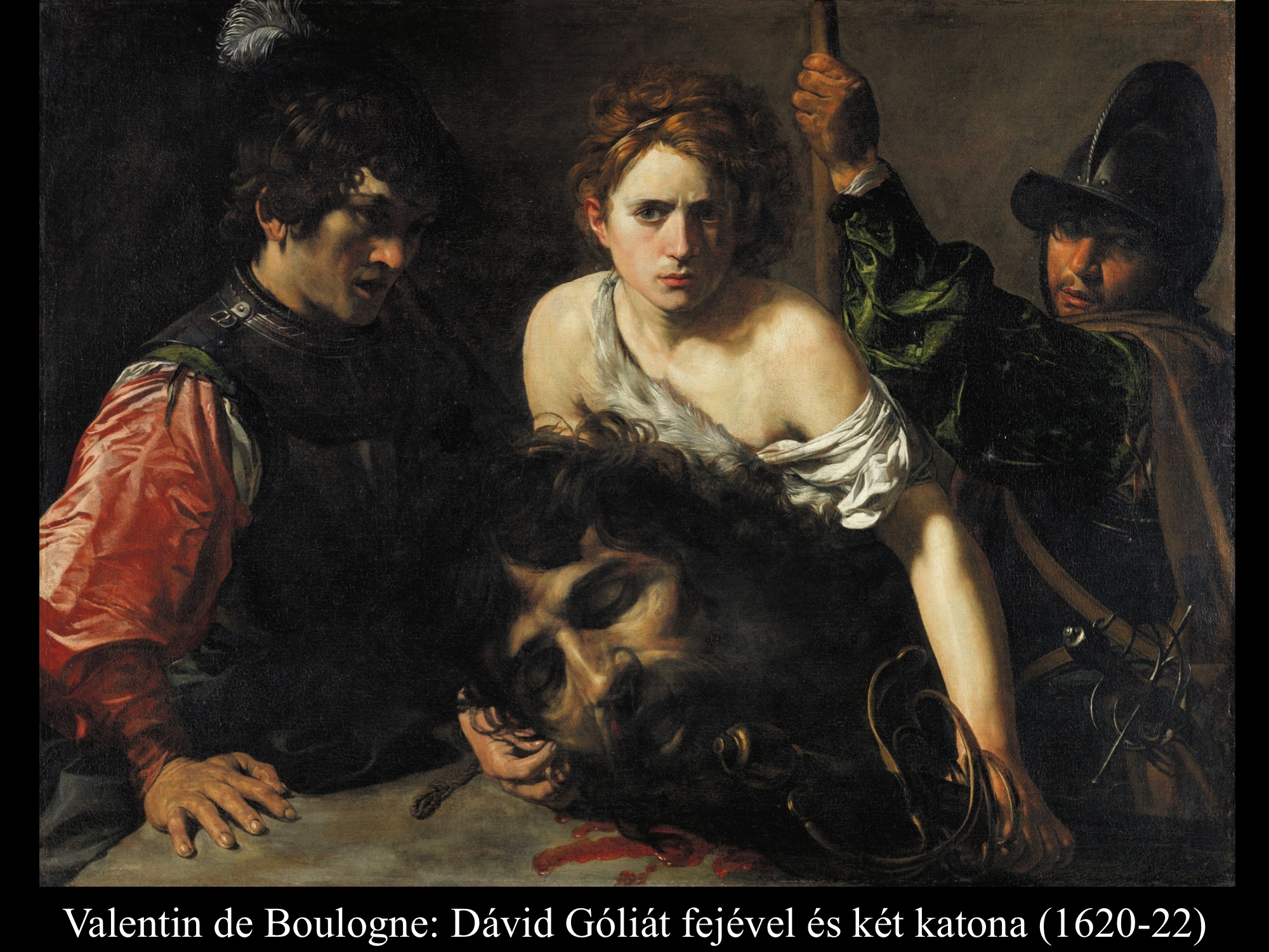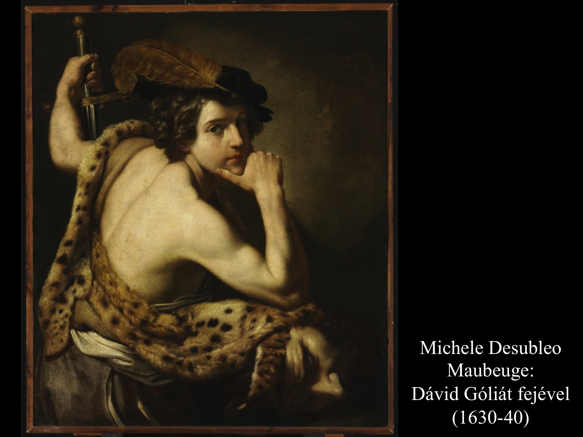 Andrea vaccaro (1635) és Giovanni Lanfranco (17. sz.) Dávidja Góliát fejét vonszolja maga után. Fegyverek nincsenek nála, sátrában hagyta őket.