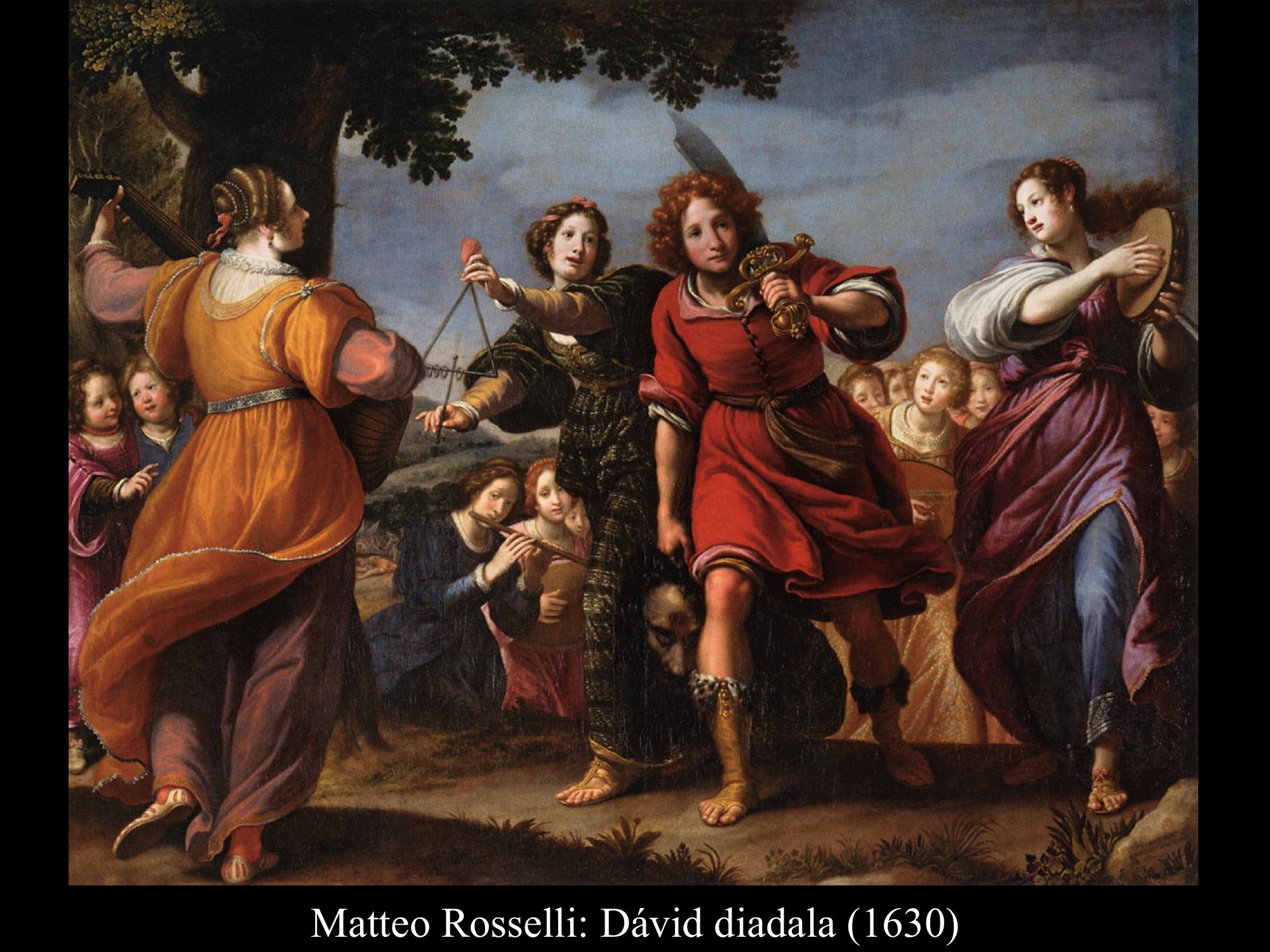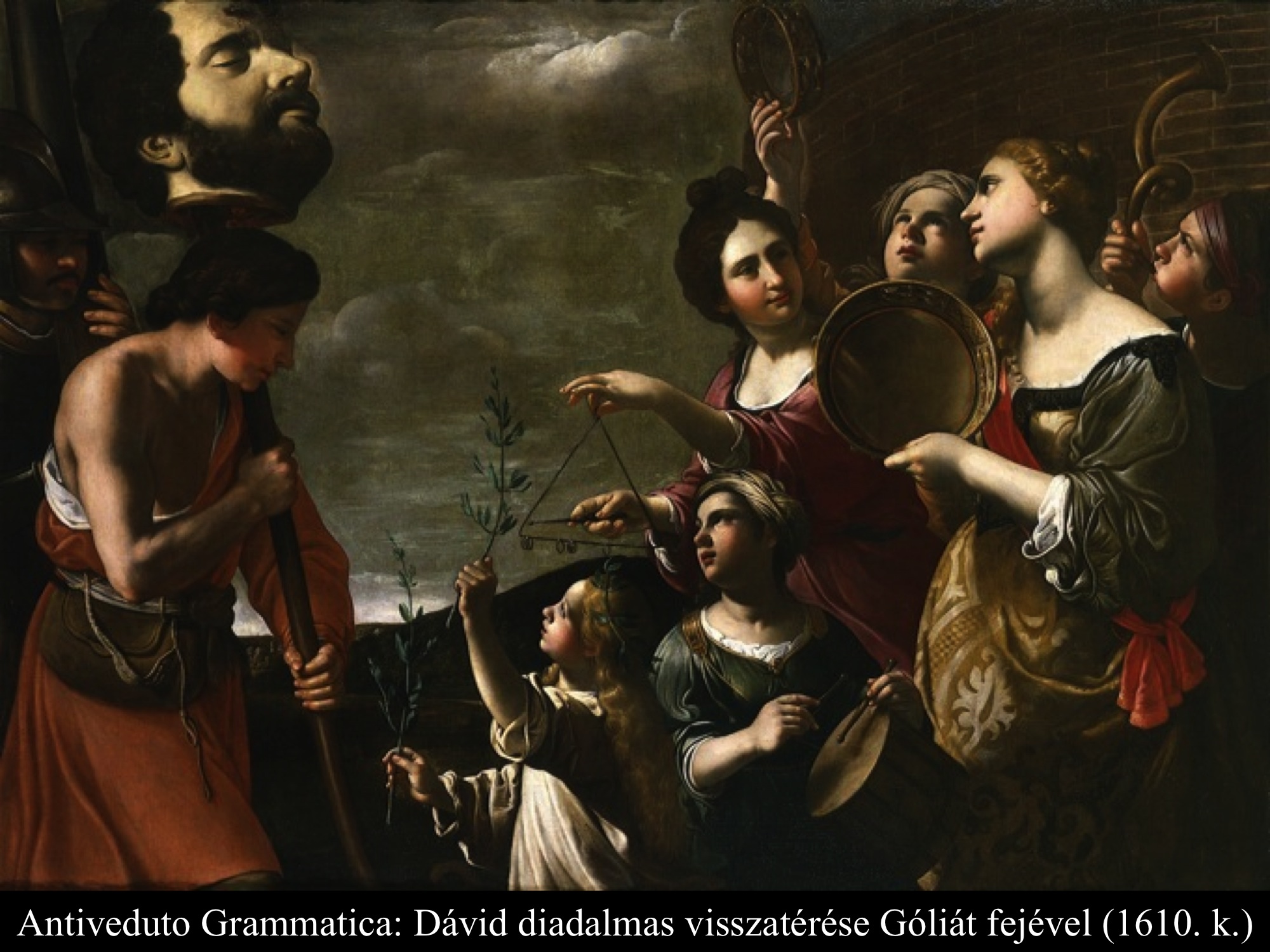 Antiveduto Grammatica (1610 k.) festményén Dávid Góliát botra tűzött fejével érkezik, hangszereken játszó asszonyok köszöntik, egy kislány babérágakat nyújt felé, melyből a dicsőség koszorúját szokták fonni. Matteo Rosselli (1630) Dávidja Góliát fejét hajánál fogva cipeli, vállán kardját támasztja. A festő nem figyelte meg eléggé a Szentírás szövegét, miszerint fegyvereit a sátrában hagyta, s csak a filiszteus fejét vitte magával Jeruzsálembe. (1 Sám 17,54)