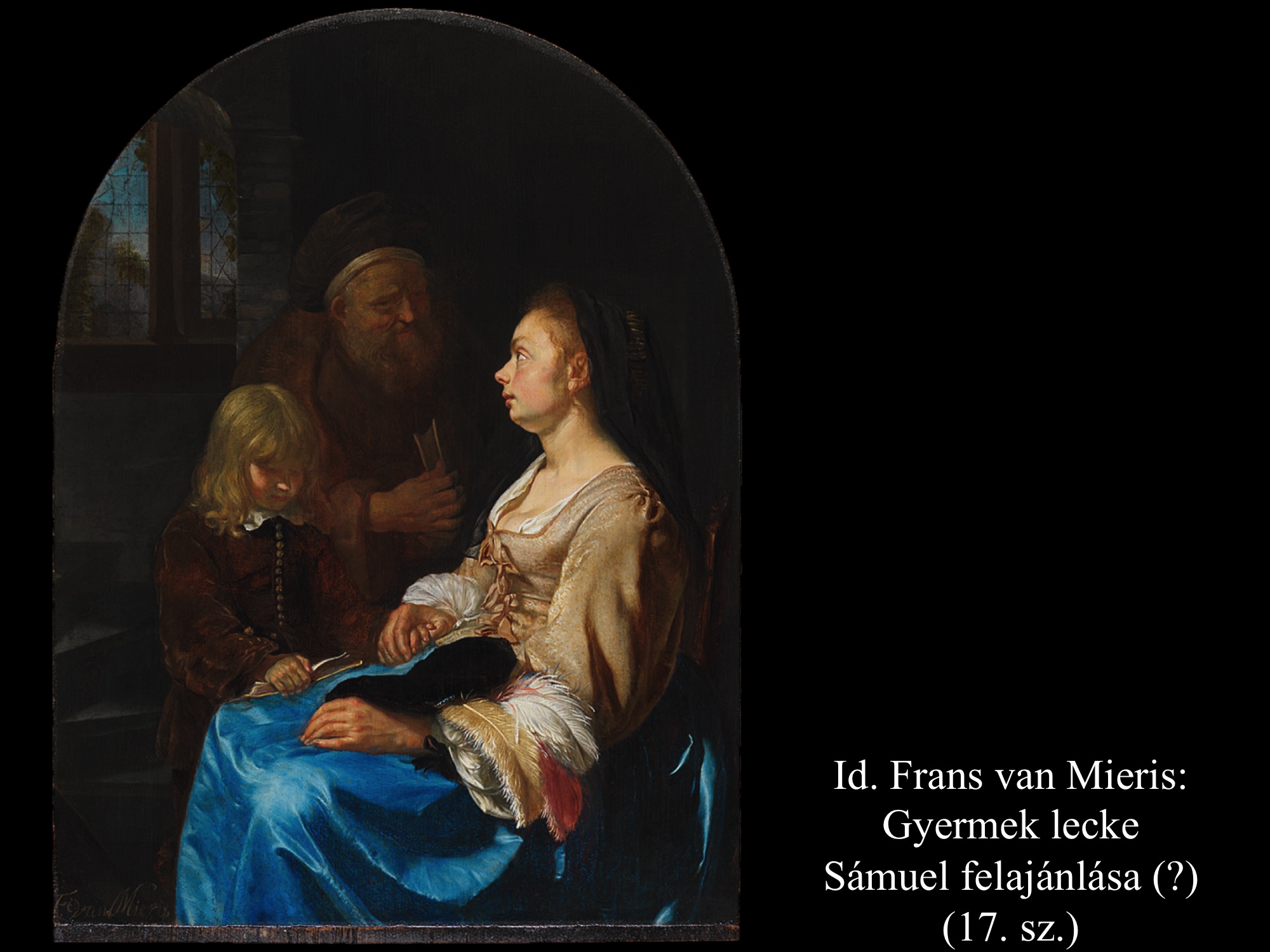 Id. Frans van Mieris (17. sz.) képének címe "Gyermeklecke". Sámuel felajánlásaként tartják számon. Hanna széken ül, könyvébe pillantó kisfia kezét szorongatja. Tekintetéből az elválás fájdalma olvasható ki. A főpap örömét leli a tisztelettudó, alázatos gyermekben, Isten Sámuellel kárpótolja a helyes útról letérő fiai helyett. A Gerrit Dou-nak (17. sz.) tuljdonított festmény Rupert pfalzi hercegről és oktatójáról készült, akik Sámuelt és Élit személyesítik meg.