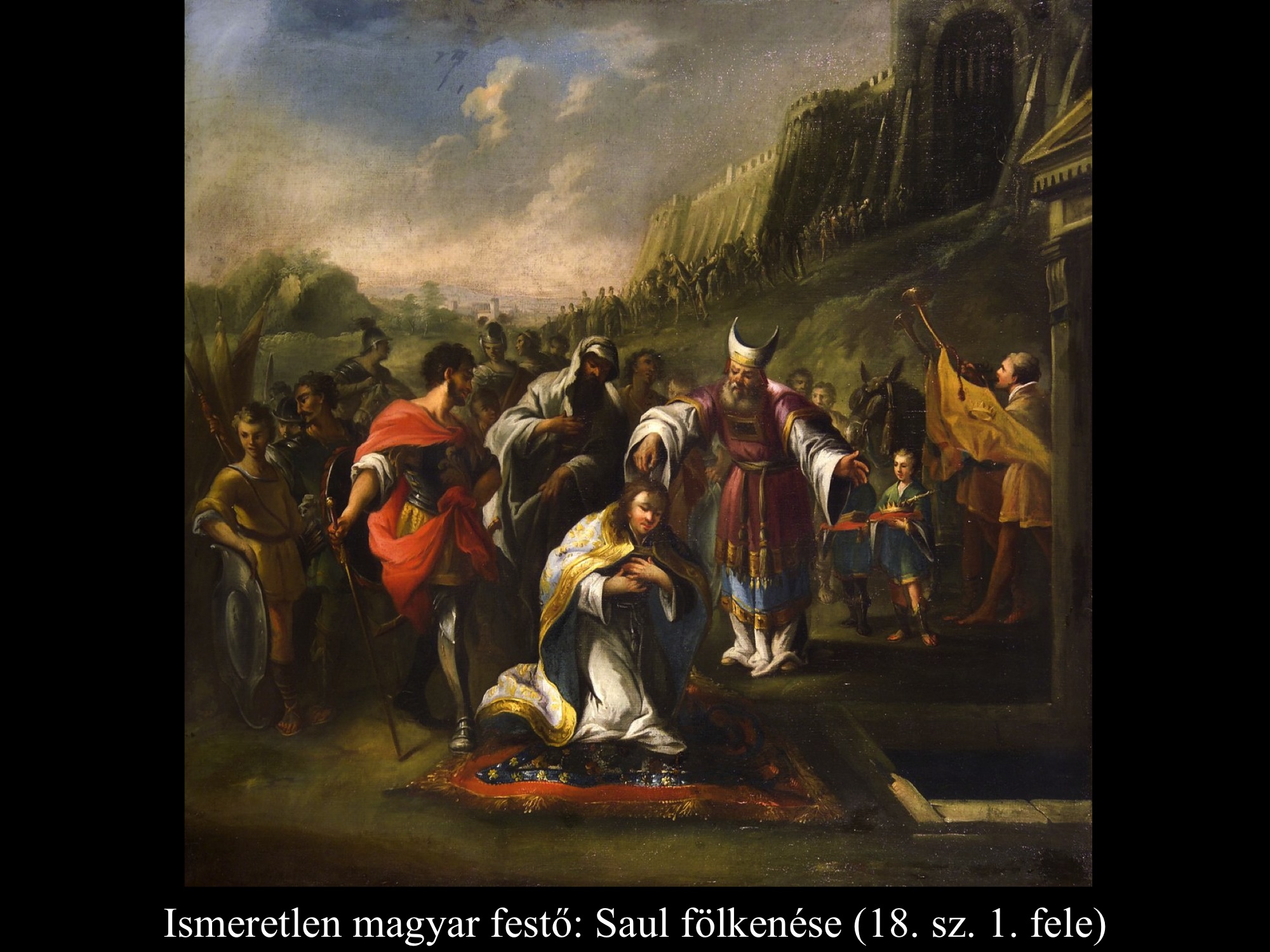 Esrasmus Quellinus (17. sz.) a Szentírás szövegéhez hűen a város határába helyezte a jelenetet. A városkapun túl, a városfal alatt kente föl királlyá Sault Sámuel. Az ismeretlen magyarországi festő (18. sz. első fele) képe is Saul fölkenését ábrázolja.