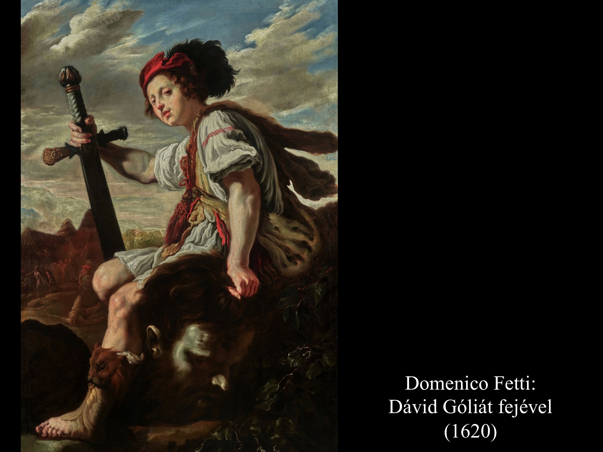 Domenico Fetti (1620) és Pier Francesco Mola (17. sz.) képein Dávid kardjára támaszkodva ül Góliát feje mellett a földön.