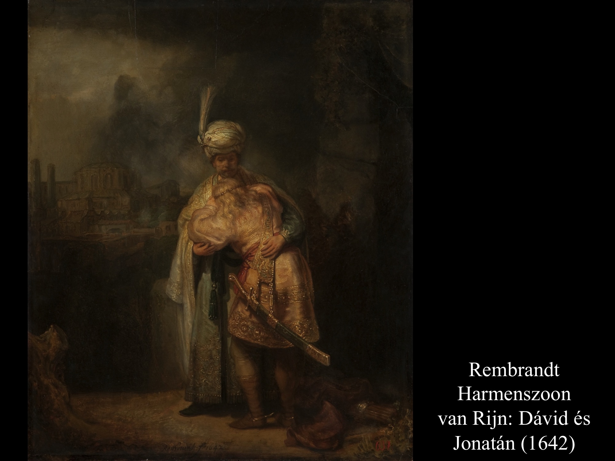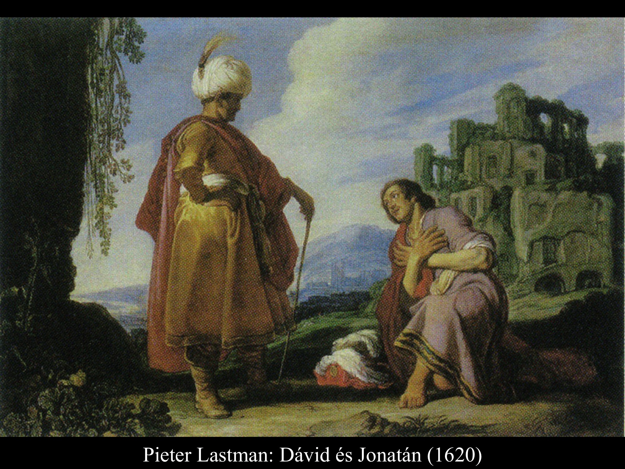 Pieter Lastman (1620) és Ferdinand Bol (17. sz.) képein Dávid Jonatán előtte térdel, s megköszöni segítségét. A nyílvesszők Rembrandt (1642) és Fedinand Bol képén jól láthatók a földön. Rembrandt (1642) a könnyes búcsú pillanatait ábrázolta.