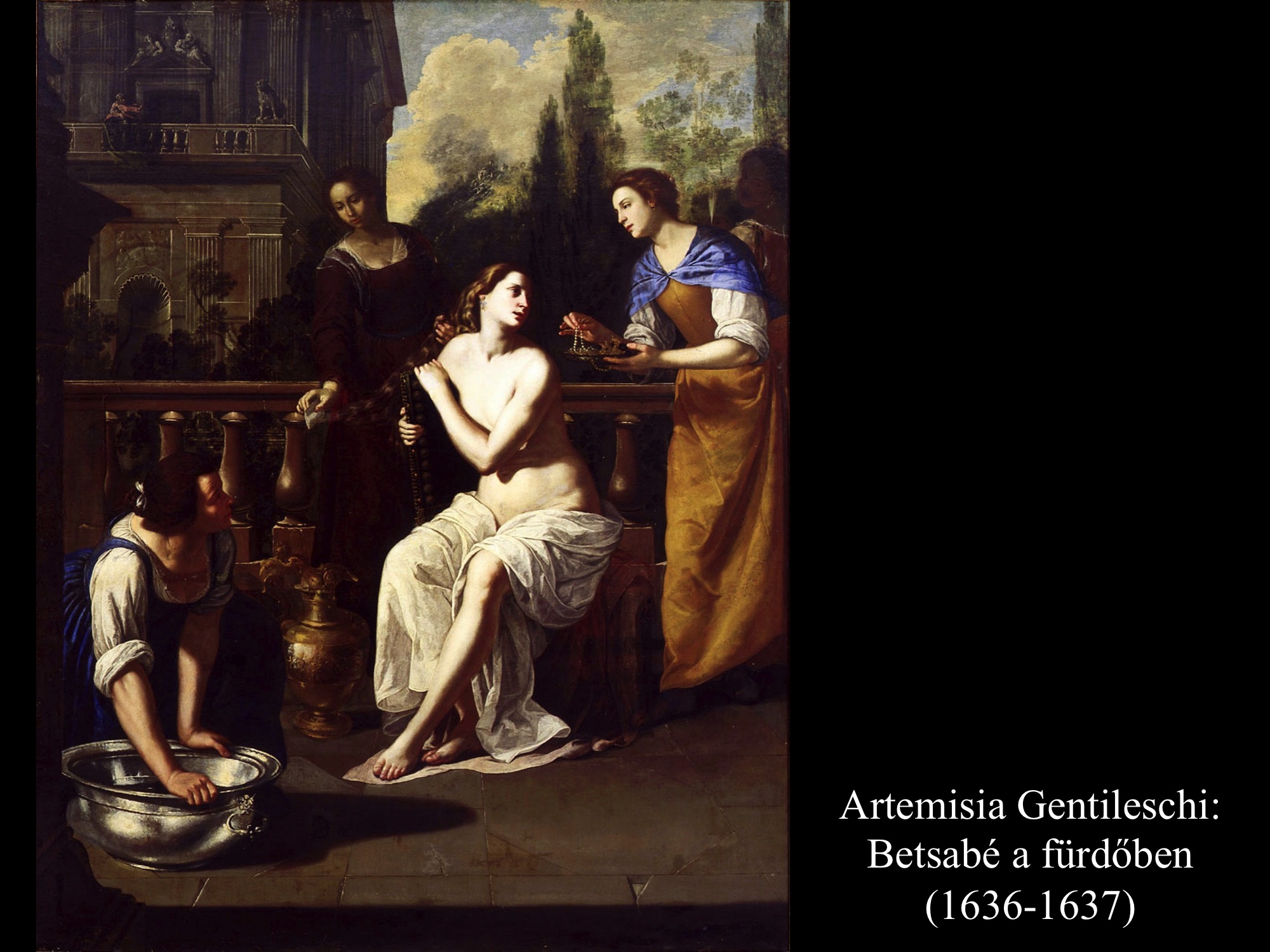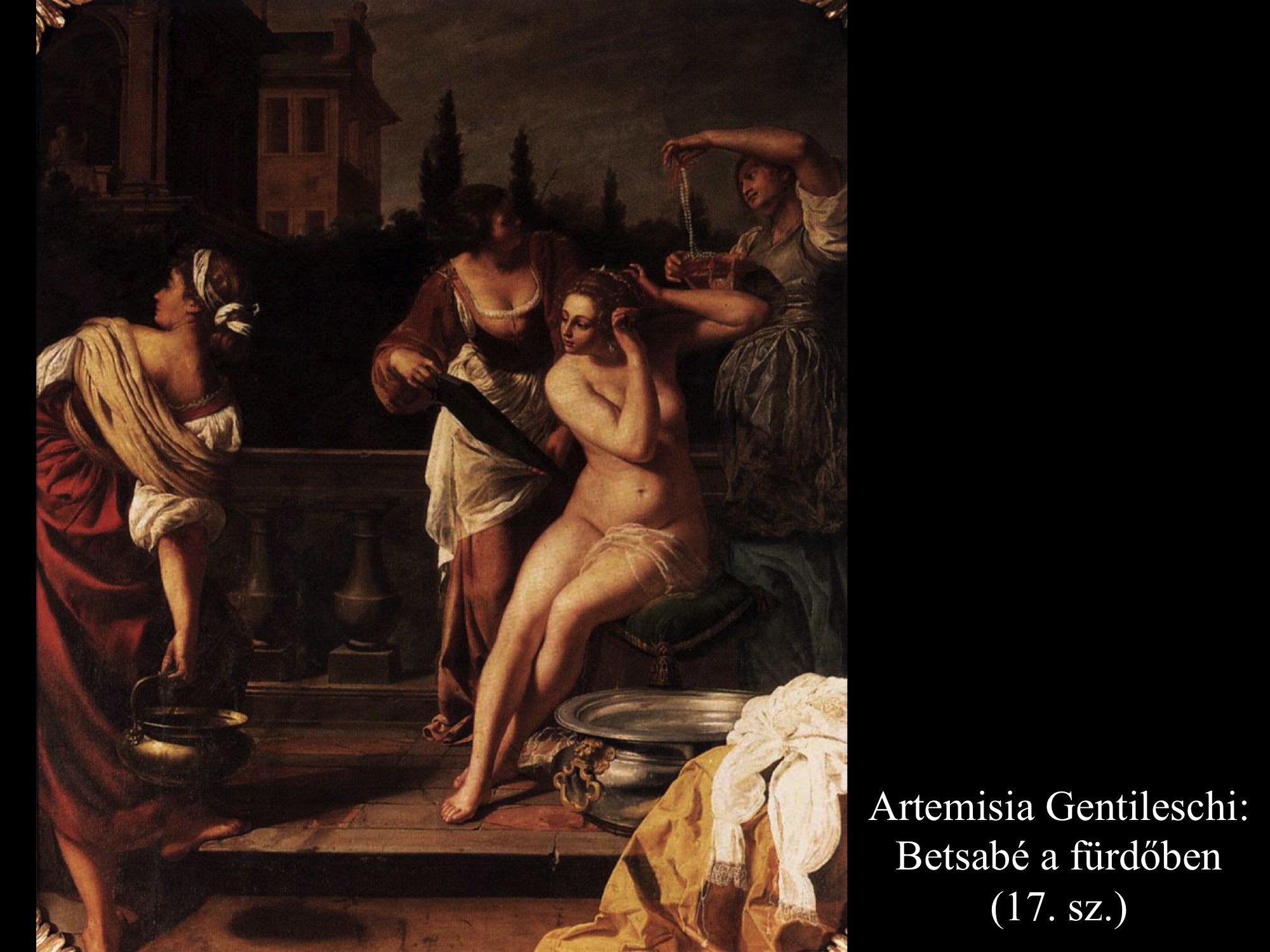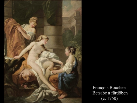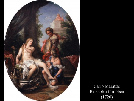 A barokk-kori festőnő, Artemisia Gentileschi (17. sz.), kit festőművész édesapjának barátja fiatal korában megerőszakolt, több képet is festett a fürdőzés közben meglesett Betsabéról. A fürdőtál mellett mezítelenül ülő asszonyt szolgálónői veszik körül. A legtöbb képen, ahogy Giuseppe Bartolomeo Chiari (c. 1690), Carlo Maratta (1720) és Francois Boucher (c. 1750) festményein is látható, a szolgálónők Betsabé haját fésülik, fonják, máshol lábát törölgetik, vagy épp felékszerezik az asszonyt. Jean Francois de Troy (1750) úri kényelembe helyezkedve ábrázolja Betsabét, egyik szolgálónője még kezet is csókol neki. A palota teraszáról figyelő Dávid alakja elmaradhatatlan figurája a kompozícióknak.