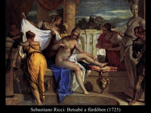Sámuel második könyvének leggyakrabban ábrázolt jelenete: Betsabé (Batseba) a fürdőben. A Dávid király uralkodásáról szóló ószövetségi könyv képes bemutatásához gyűjtött 17-18. századi festmények közül 91-ből 40 db jeleníti meg a fürdőző Betsabét, Urija feleségét, akit palotája tetőteraszáról pillantott meg Dávid.