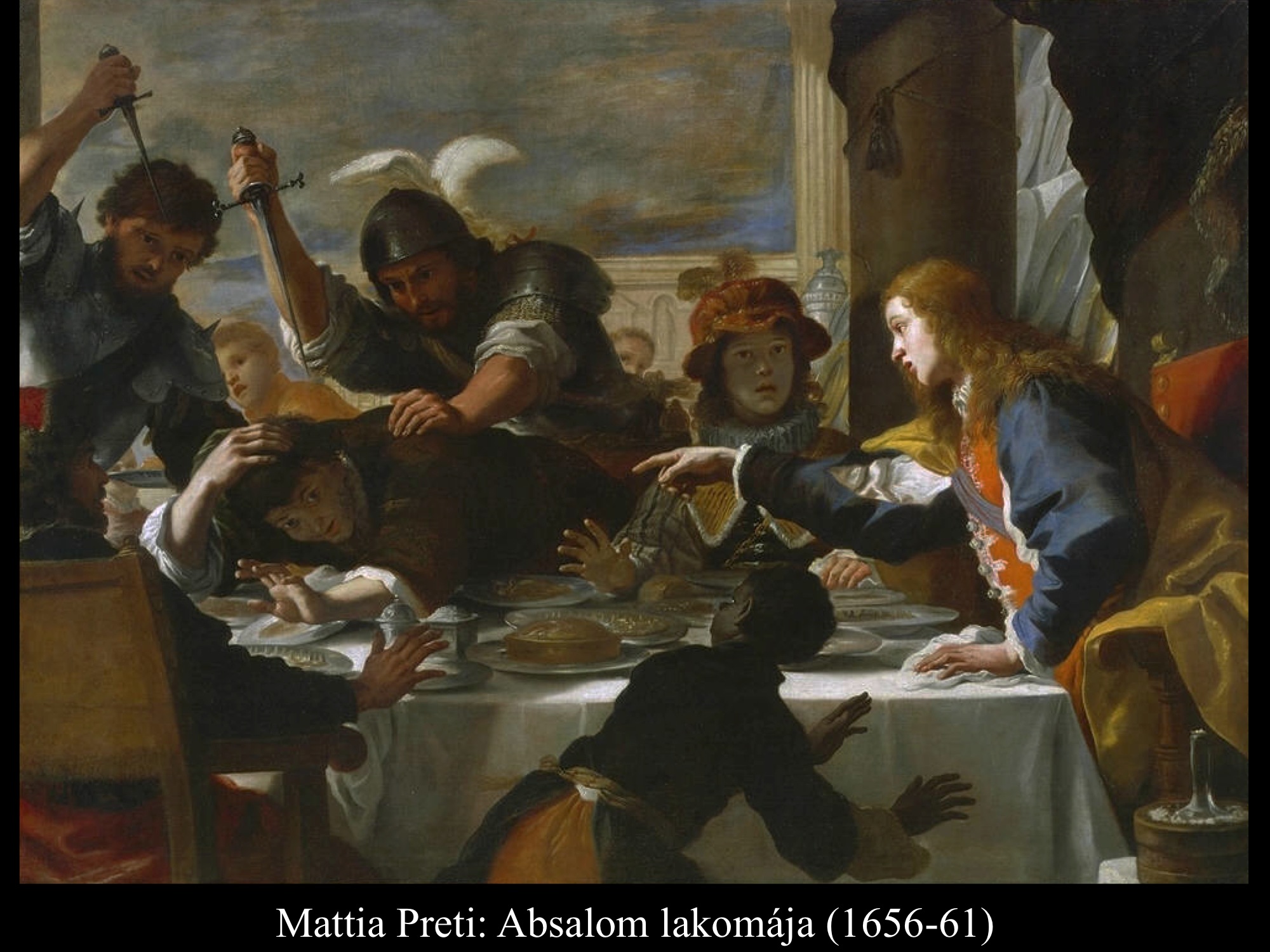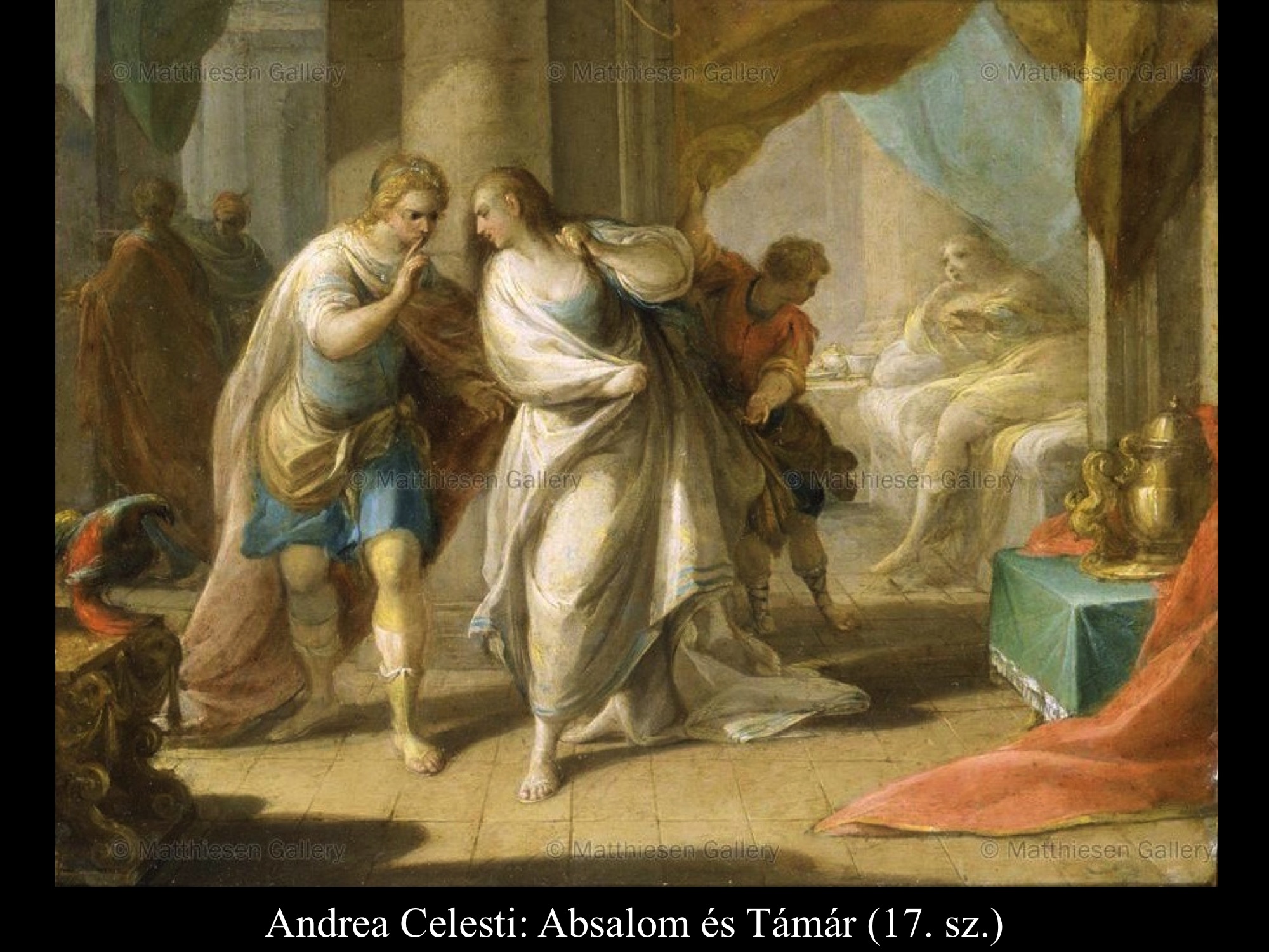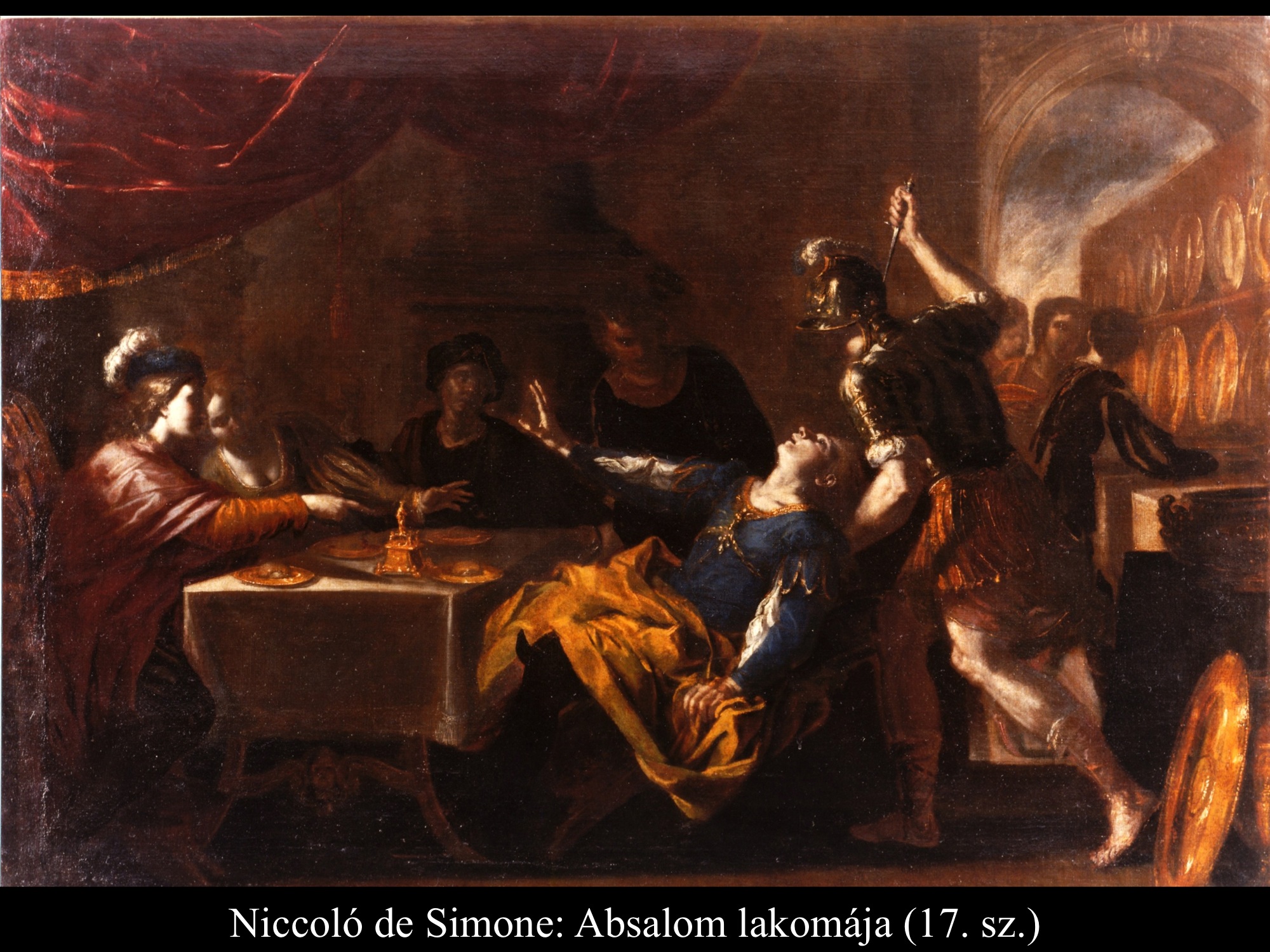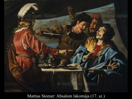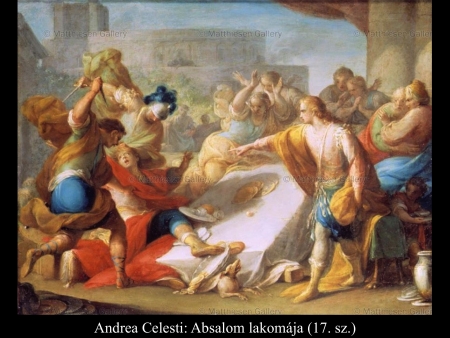 Andrea Celesti (17. sz.), Niccoló de Simone (17. sz.), Mattia Preti (1656-61) és Mattias Stomer (17. sz.) festményein Absalom parancsára szolgái megölik Amnont a királyi lakomán.
