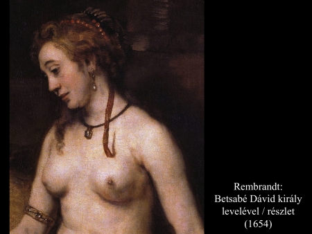 Egy évre rá, abban az időben, amikor a királyok hadba szoktak szállni, Dávid elküldte Joábot és vele a testőrségét, és egész Izraelt. Lemészárolták az ammonitákat, és megostromolták Rabbát. Maga Dávid Jeruzsálemben maradt. Az egyik nap estefelé történt, hogy Dávid fölkelt fekvőhelyéről és fölment királyi palotája tetőteraszára. A tetőről meglátott egy asszonyt, amint épp fürdött. Nagyon szép asszony volt. Dávid elküldött és értesüléseket szerzett az asszony felől. Így tájékoztatták: „Batseba az, Eliam lánya, a hettita Urijának a felesége.” Erre Dávid elküldte embereit és elhívatta. El is ment hozzá, és ő együtt hált vele, majd havi tisztulása közeledtekor hazament. Ám az asszony teherbe esett. Erre elküldött és megüzente Dávidnak: „Állapotos vagyok.” (2Sám11,1-5)