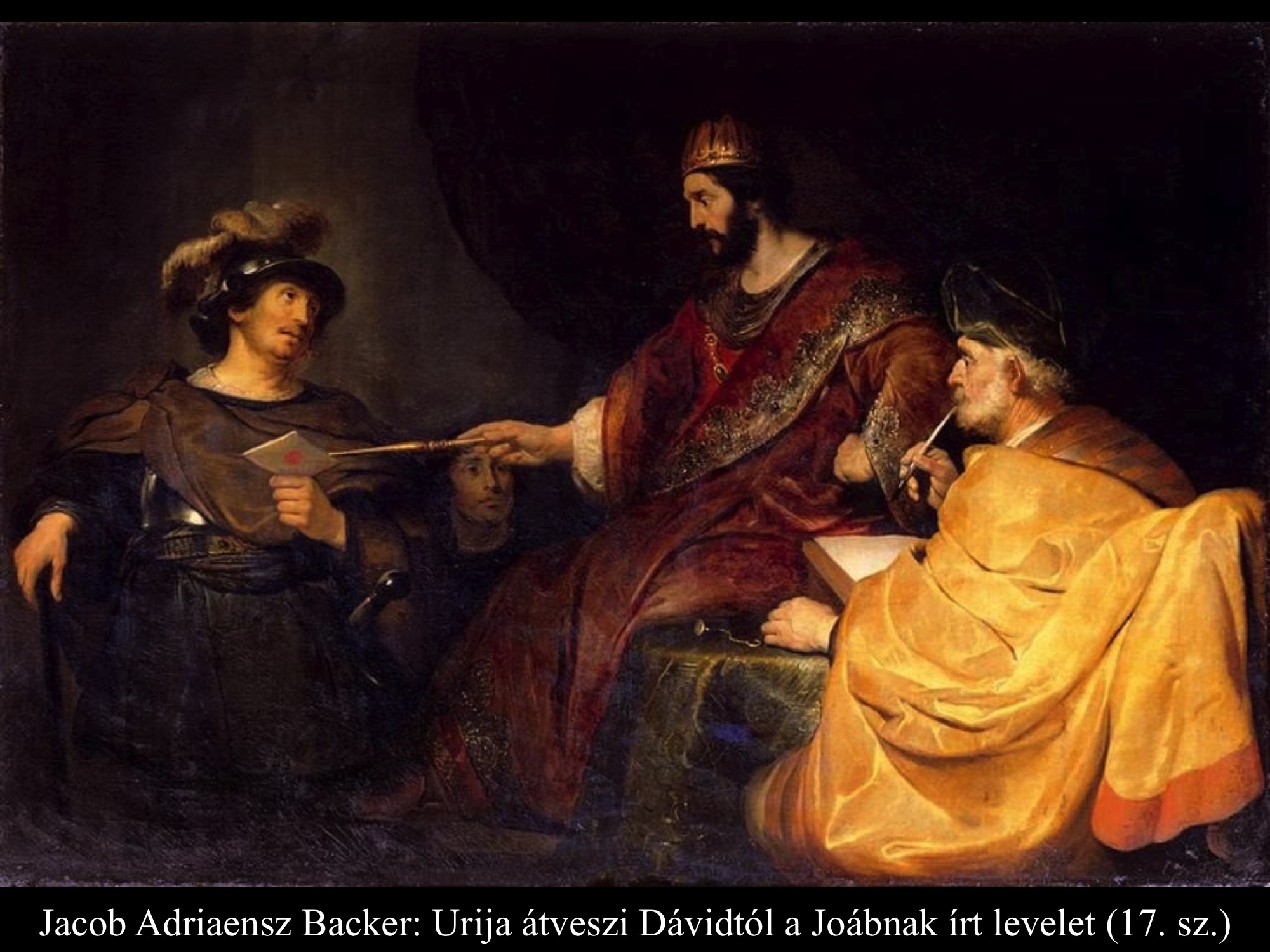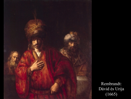 Az 1665-ben festett Rembrandt-képen ugyancsak a levél átadására kerülhetett sor. Urija a levelet szíve fölé csúsztathatta a ruhájába, de kézmozdulata ártatlanságát is kifejezi. Dávid tekintetéből bűntudat olvasható ki, s a háttérben ülő Nátán próféta (?) arca is elkomorodik.