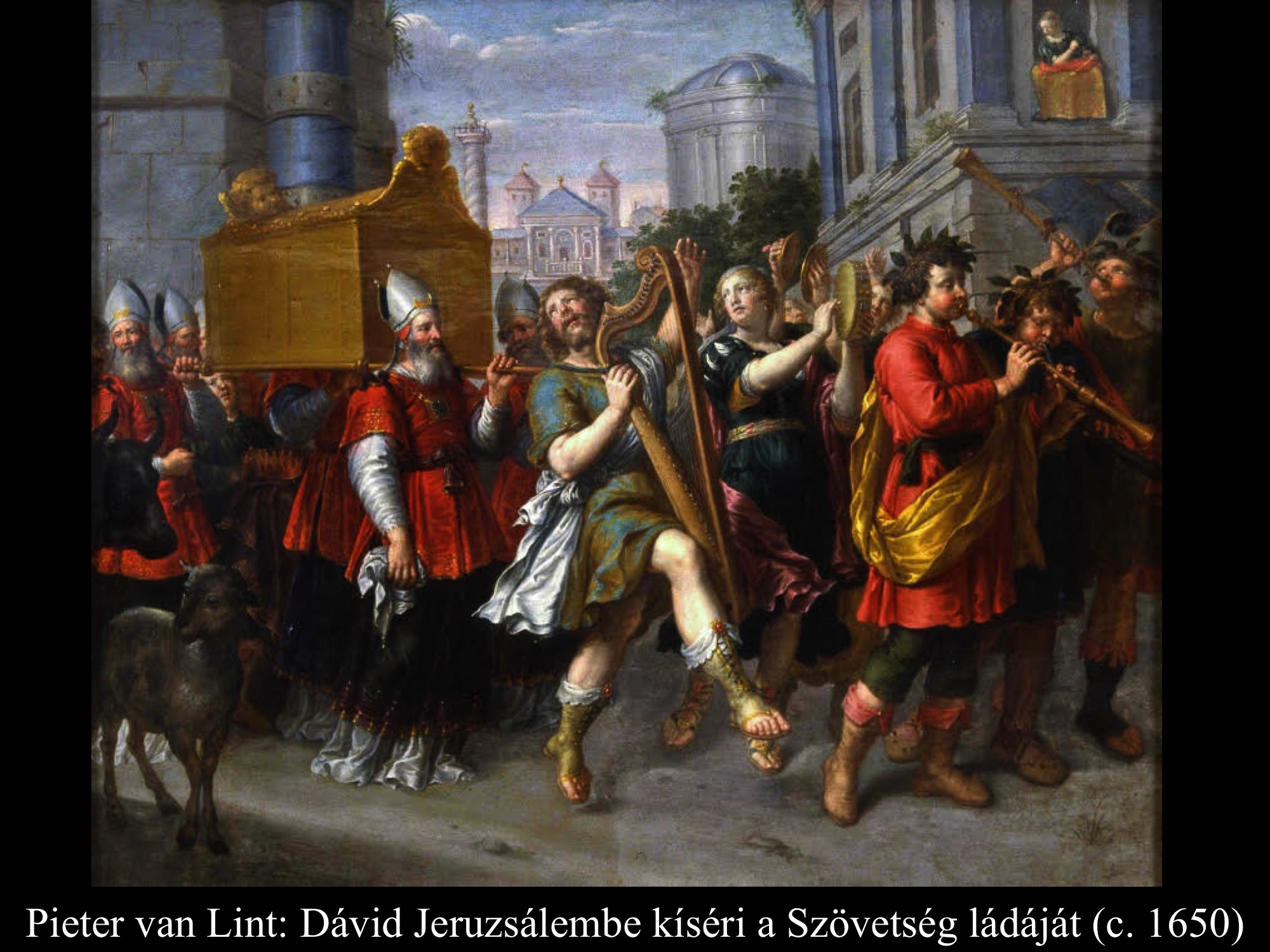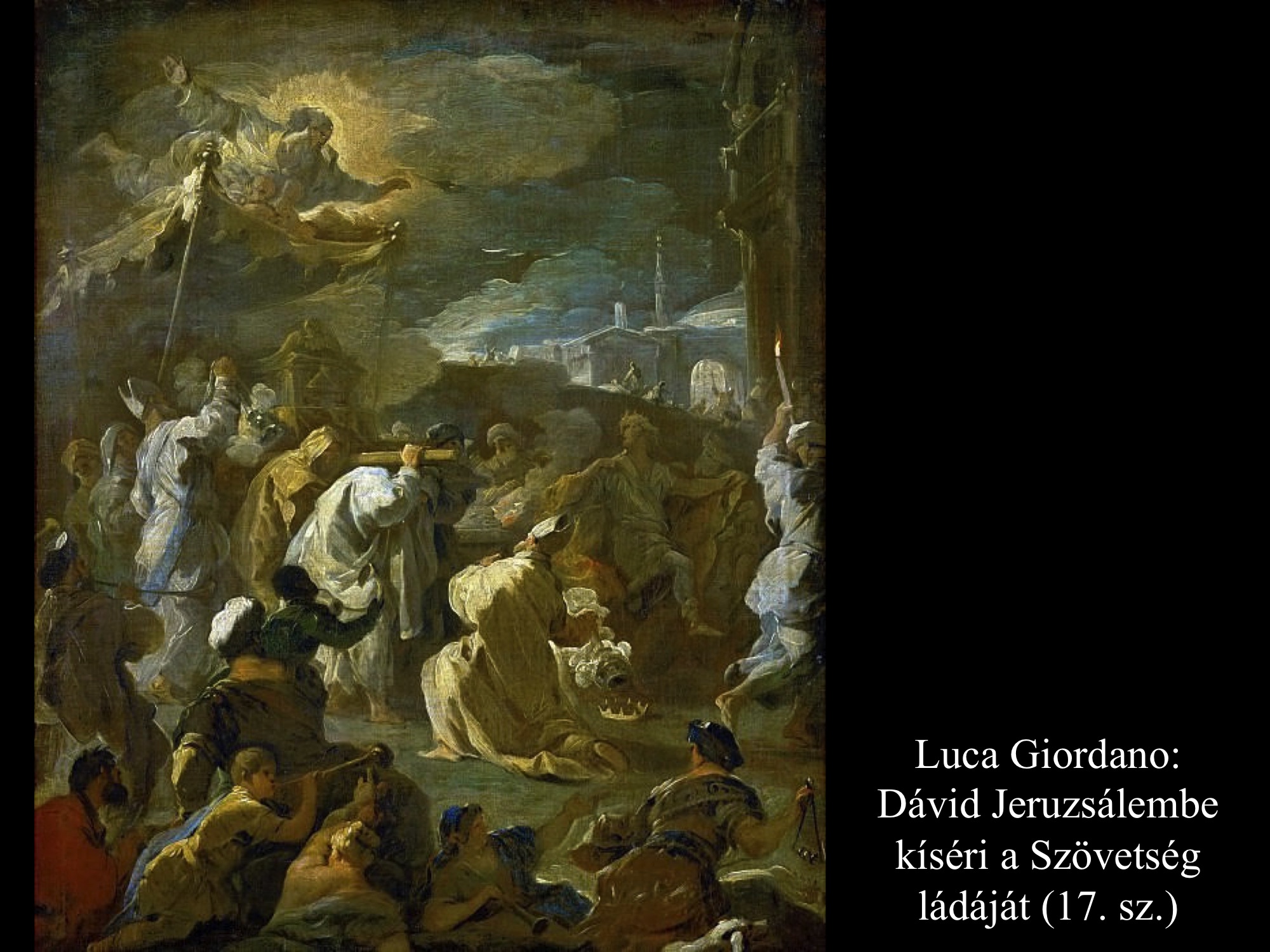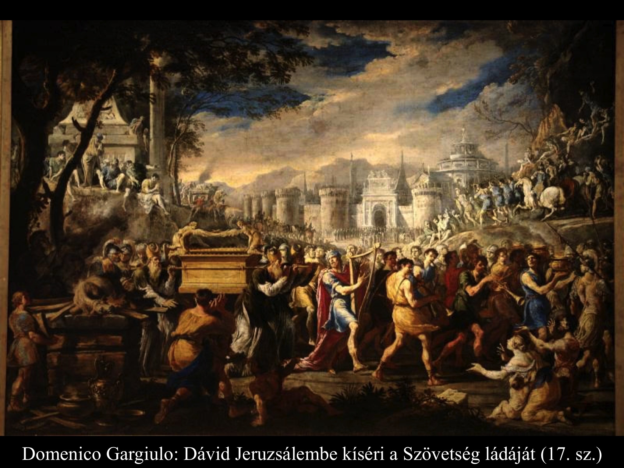 Luca Giordano (17. sz.) és Domenico Gargiulo (17. sz.) festményein Dávid városának kapuja is feltűnik a háttérben. A Szövetség ládáját ünnepélyes menet kíséri Jeruzsálembe.