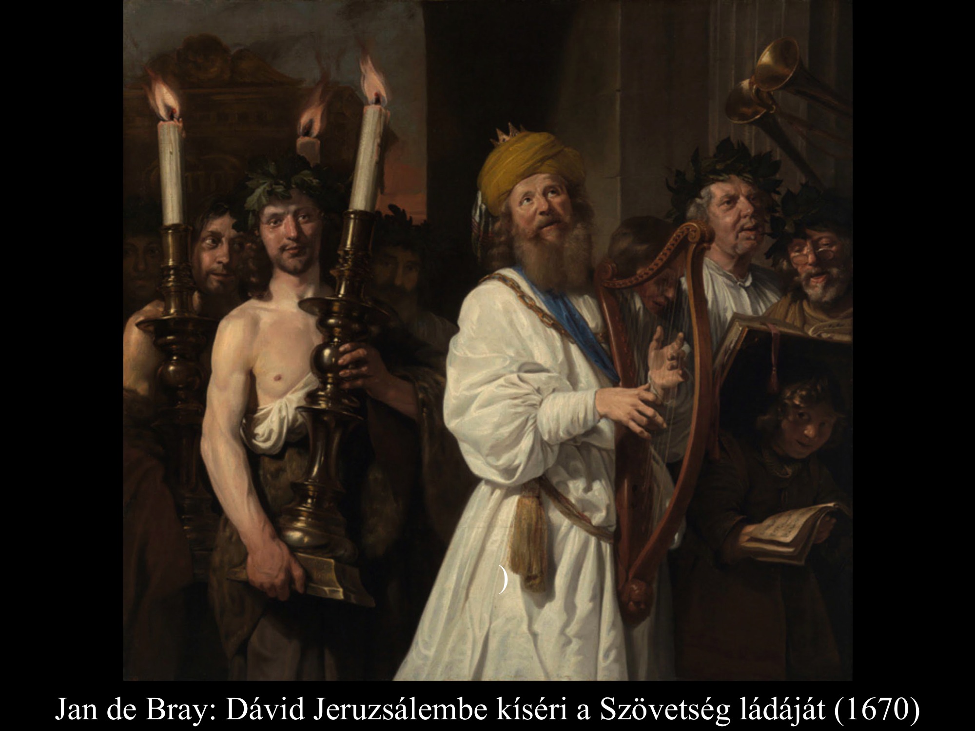 Jan de Bray (1670) festményén már az ünnepélyes érkezés látható, amint Dávid áthalad Jeruzsálem kapuja alatt a Szövetség ládájával.