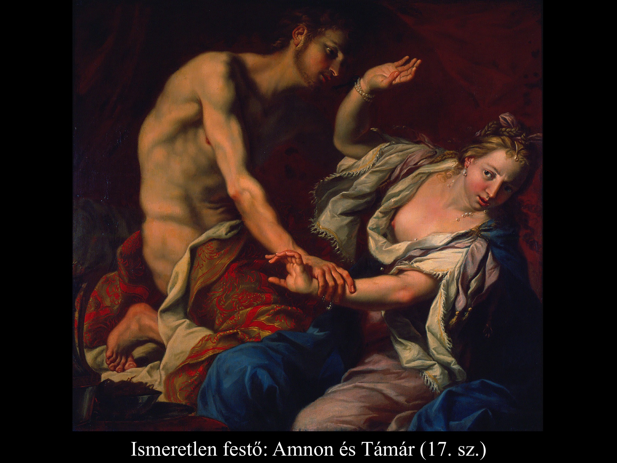 Amnon meggyalázza húgát, Támárt.