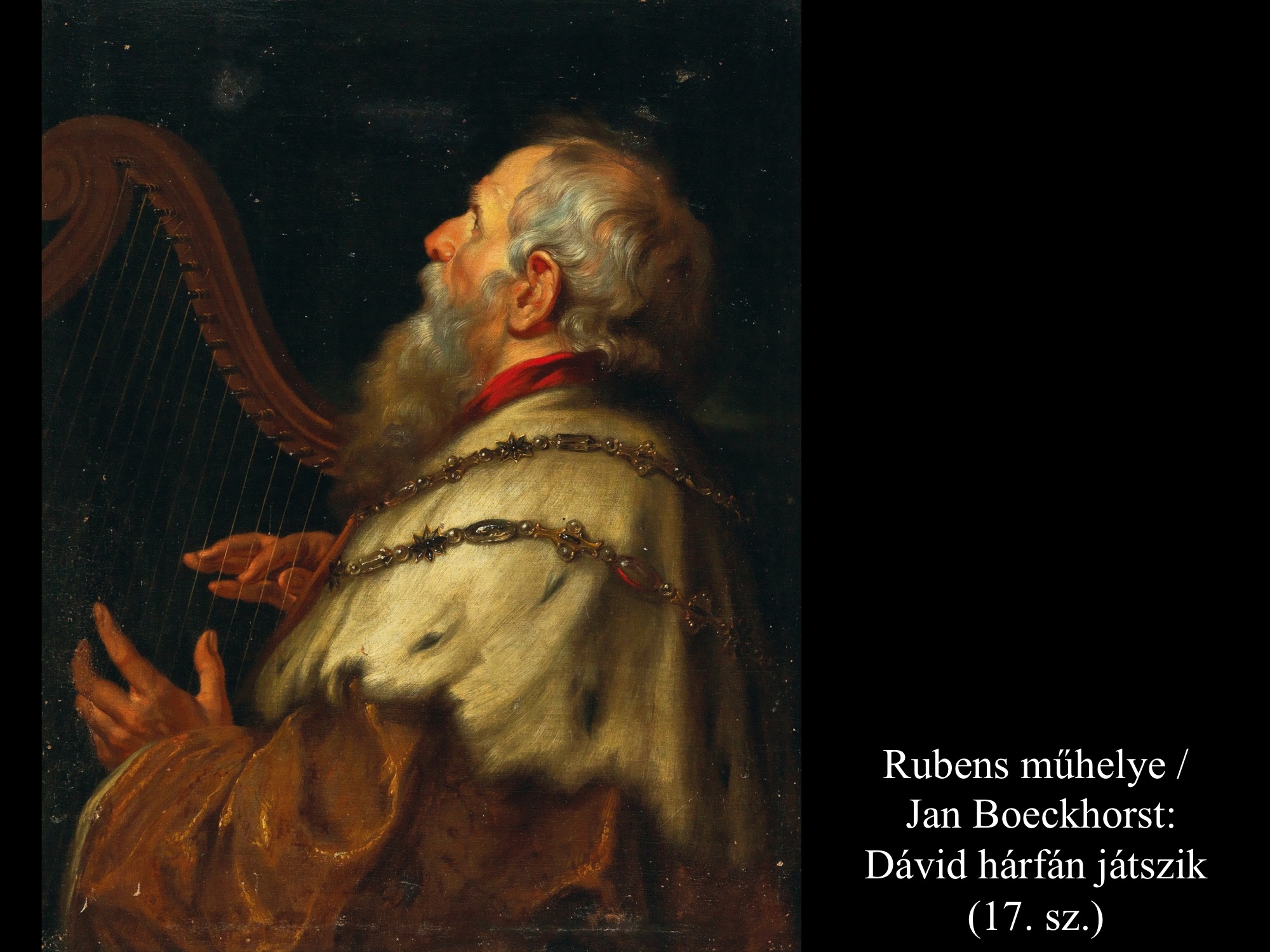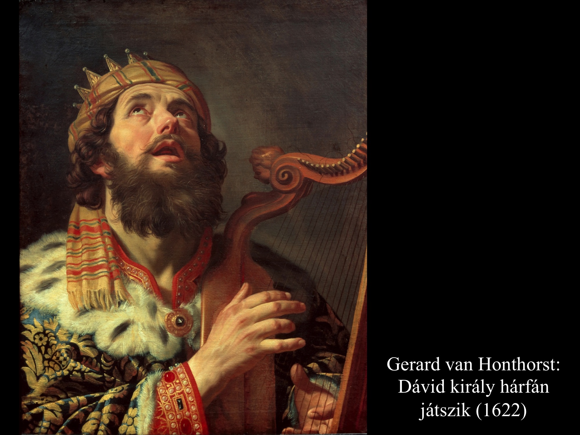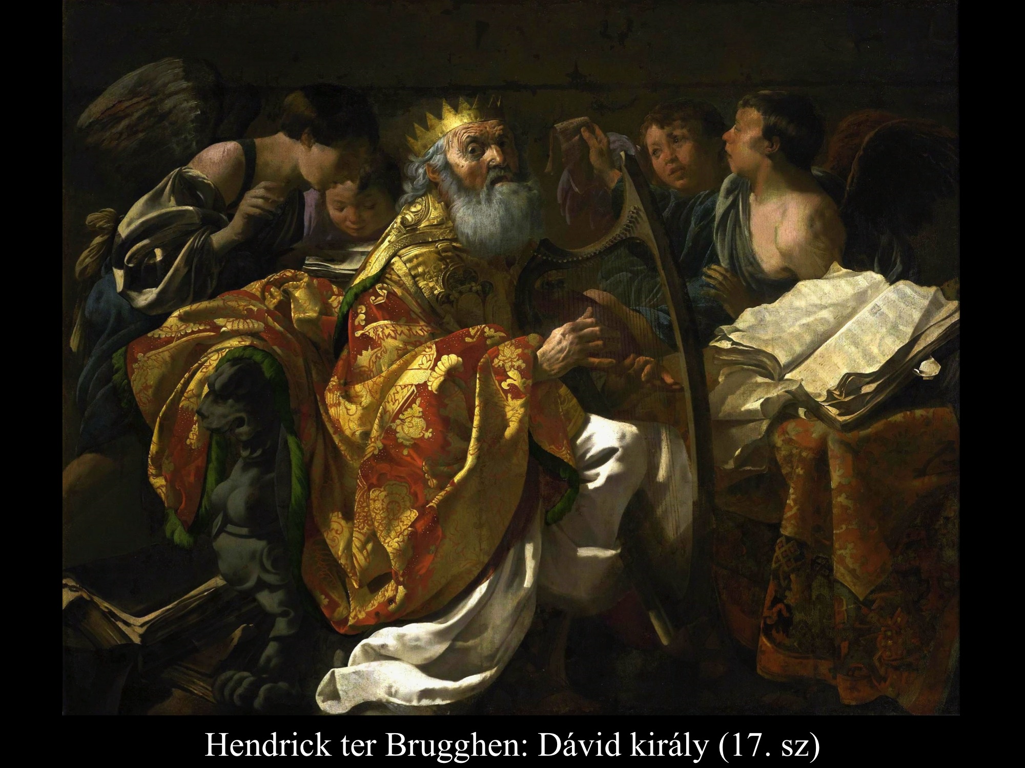 Gerard van Honthorst (1622) a középkorú királyról, Jan Boeckhorst (17. sz.) pedig az idős Dávidról festett portrét. Mindkét képen égre emelt tekintettel énekel, s közben hárfáját pengeti. Izrael dalainak szerzőjét Domenichino (1619) és Hendrick ter Brugghen (17. sz.) egyaránt angyalok társaságában festette meg, akik lejegyzik a Dávid által írt zsoltárokat, s együtt énekelnek vele.