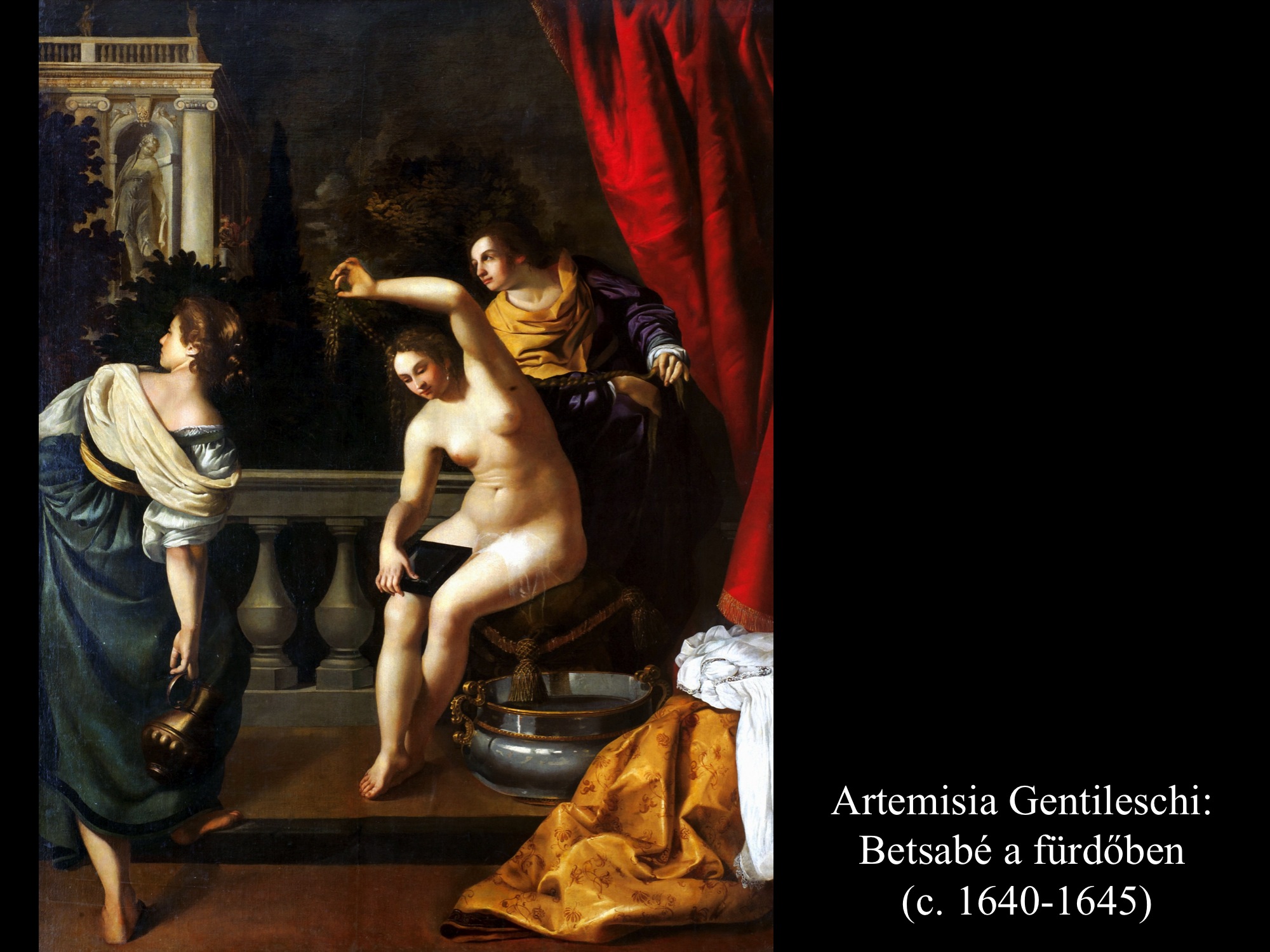 A Szent István Társulati Biblia szövegében a Batseba névváltozat szerepel, én azonban képanyagomban az elterjedtebb Betsabé névváltozatot használom.