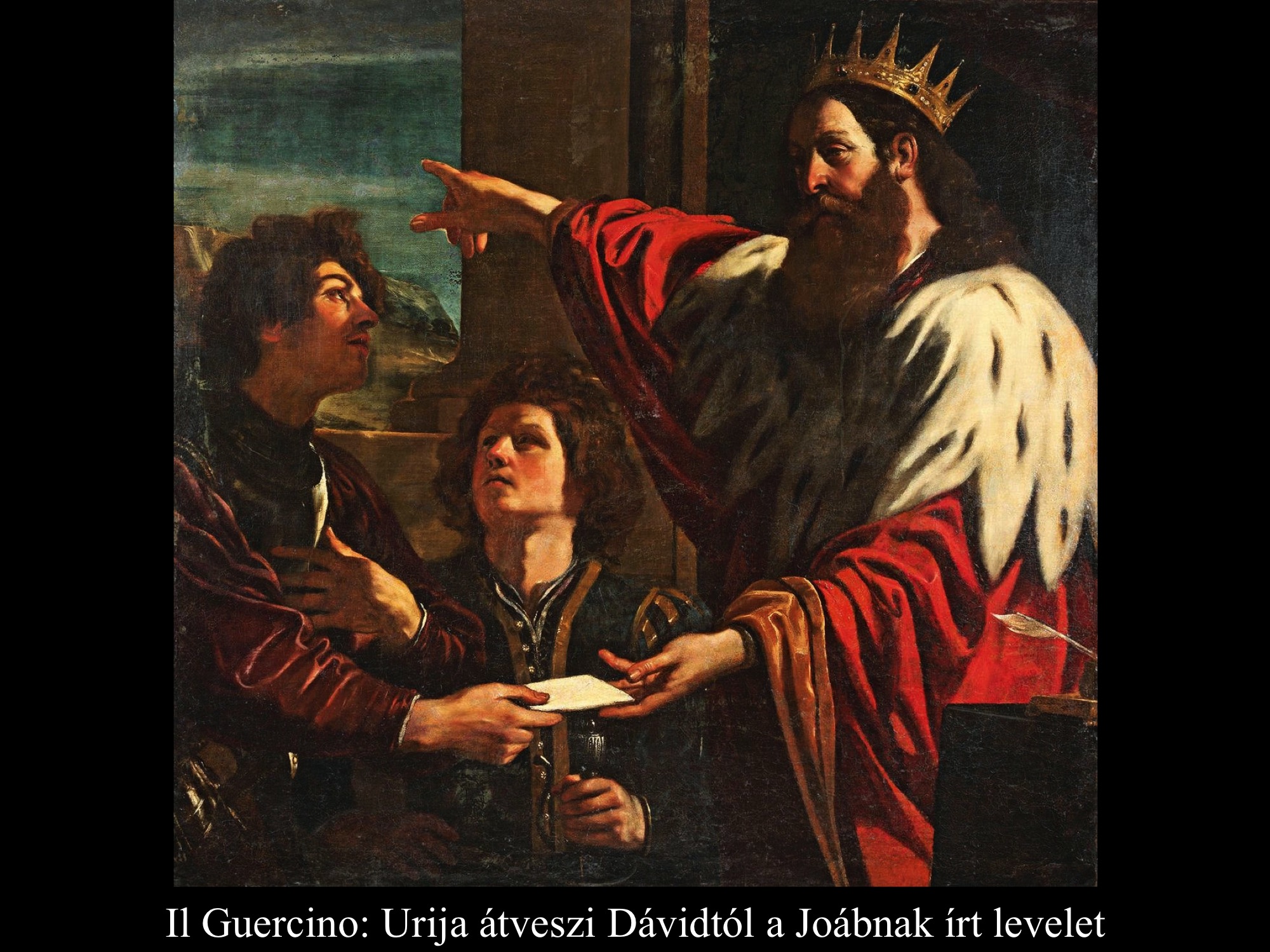 A következő festményeken Dávid levele is feltűnik. Színesbőrű szolga hozza a király üzenetét Sebastiano Ricci (1725), Luca Giordano (1696-98), Giambattista Pittoni (18. sz.), Artemisia Gentileschi (1636-37), Pieter Paul Rubens (1635), Pietro Liberi (17. sz.) képein egyaránt, míg Andrea Celestinél (17. sz.) egy fehérbőrű szolga, Francois Verwilltnél (17. sz.) pedig egy idősebb asszony kézbesíti az üzenetet.