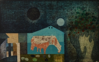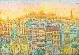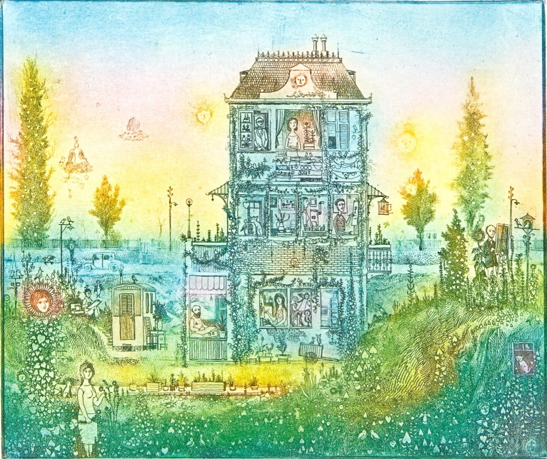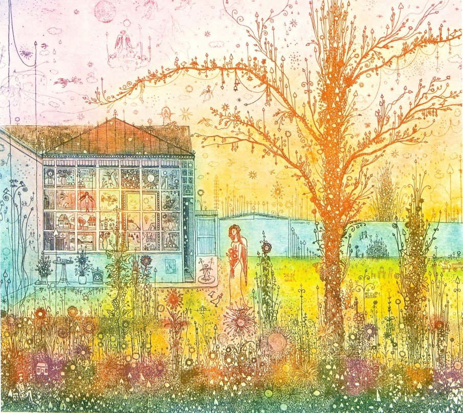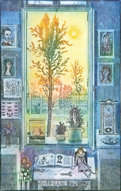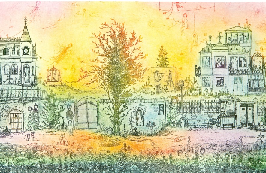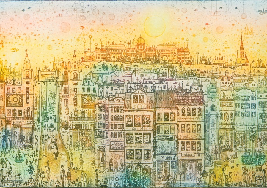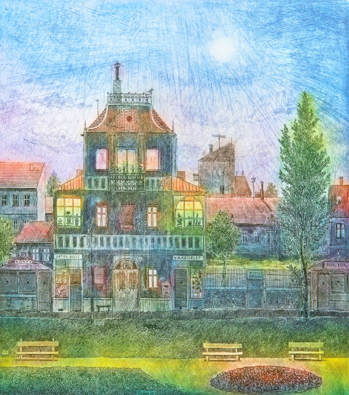 Gross Arnold (1929-2015), a “mütyűr-festő” mesés apróságokkal telizsúfolt álomházai, mikroszkopikus látásmóddal közelítik meg a világot. A szivárvány színeiben pompázó rézkarcait sajátos tündérvilágának városai és lakói népesítik be. Antal Barnabás Gross Arnoldról írt verse így szól: "Hajszáldrót kontúr / Kreatura átlengő színfolt / Fényremegés / Játszik a gyermek szemében // A ház lakható / A kalitka nyitva."