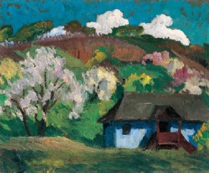 Nézem a zöld sürűn napfénylő régi házat, Itt volna élni jó... nyomom ne is keressék,