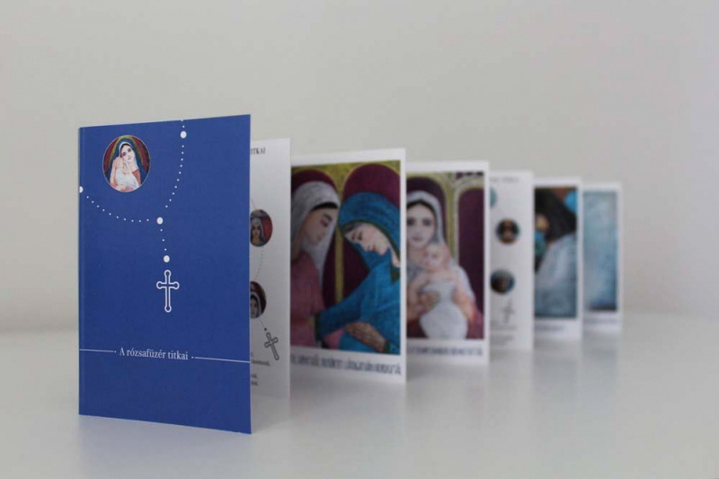 A rózsafüzér titkai című leporelló egy harmonikaszerűen kinyitható 10x7 cm-es zseb-imafüzet, mely tartalmazza a rózsafüzér imádság leírását és a titkok illusztrációit 20 képben. (Megjegyzés 2025: Jelenleg nem kapható, de tervben van az újranyomtatása)