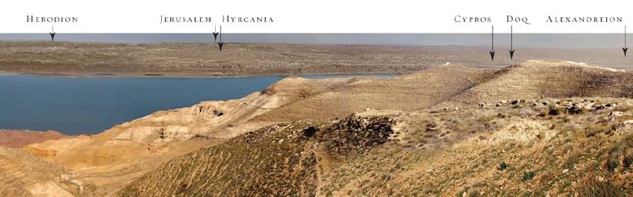 "Heródes júdeai erődjeiről készült panorámafelvétel és térkép. Délről észak felé: Maszada, Machaerus, Herodion, Hürkania, Jeruzsálem, Küprosz, Dok és Alexandreion." (Forrás: http://www.magyarszemle.hu/galeria/2016_4)