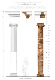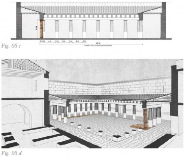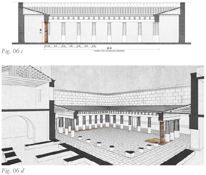 "A királyi udvar keresztmetszeti és az alaprajzi elrendezése / A királyi udvar hosszanti metszeti rajza és az elméleti rekonstrukciós rajza / A kész ión oszlop-anasztilózis, az építészeti környezet digitális látványtervébe illesztve: a színek meghatározása a régészeti leletek alapján történt." (Forrás: http://www.magyarszemle.hu/galeria/2016_4)