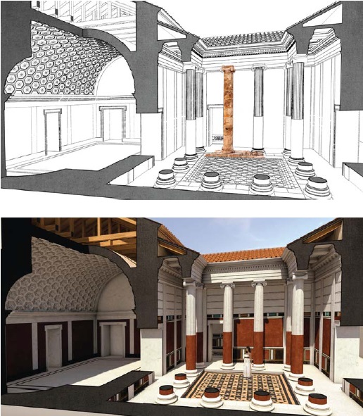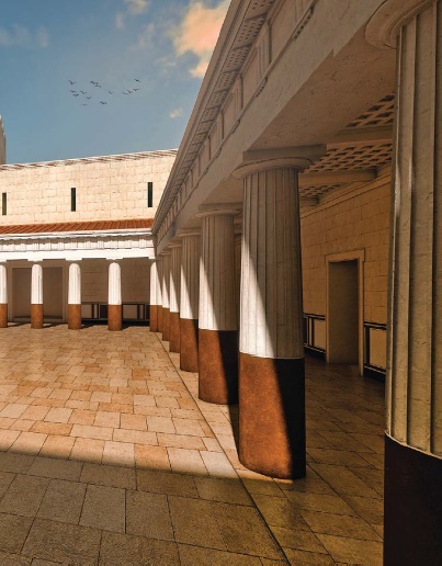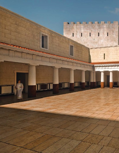 "Ez a 3D építészeti modell nem csupán a heródesi királyi udvar fennmaradt színeit, de az eredeti lithosztrótosz-padlóburkolatot is híven rekonstruálja" (Forrás: http://www.magyarszemle.hu/galeria/2016_4)